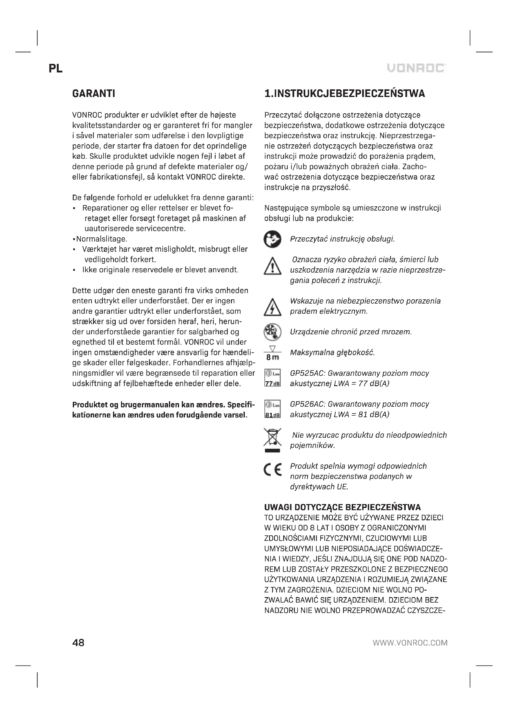 INSTRUKCJA OBSŁUGI GP525AC Vonroc