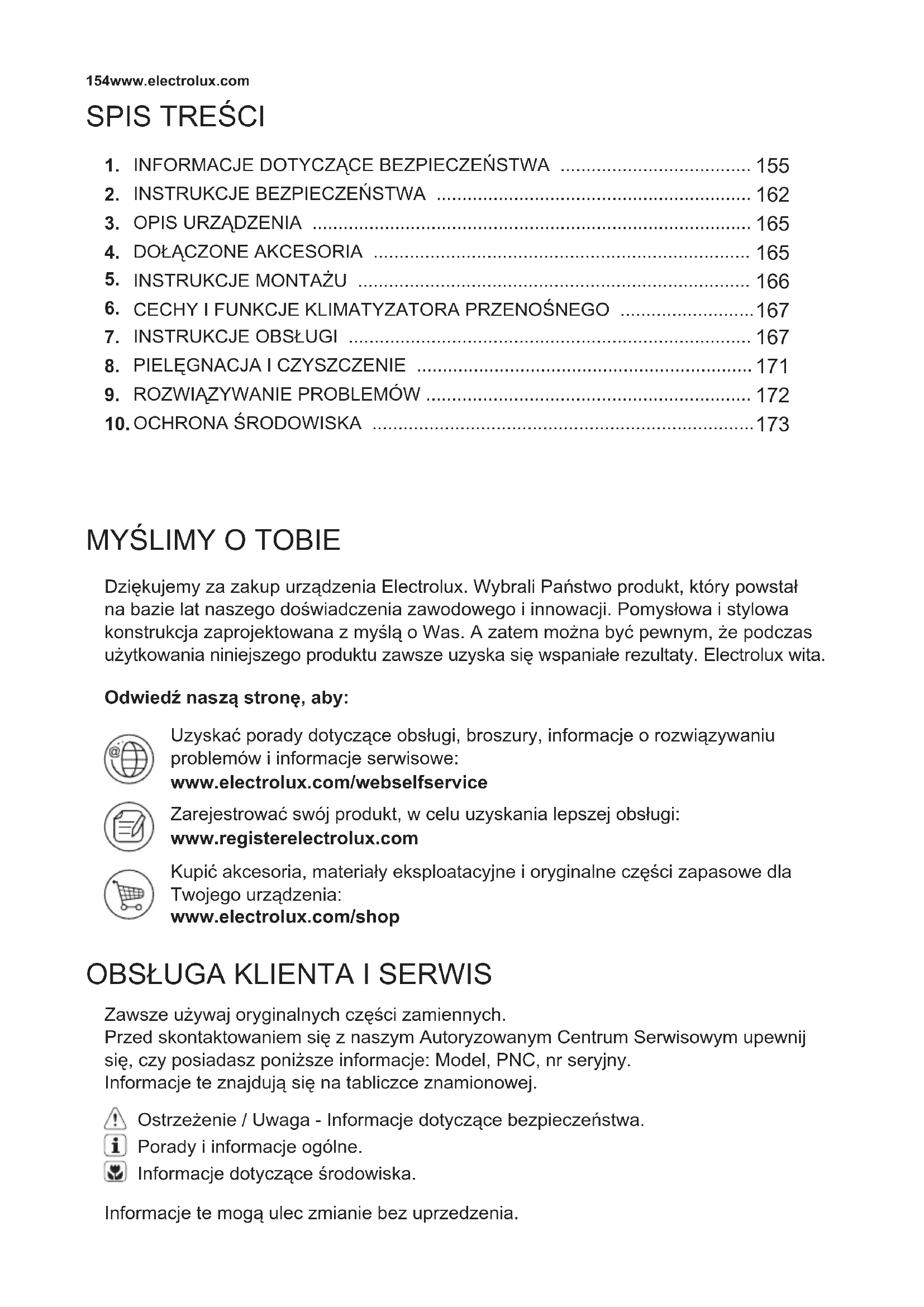 Ostrzeżenie / Uwaga - Informacje dotyczące bezpieczeństwa. Porady i informacje ogólne. Informacje dotyczące środowiska.155POLSKI