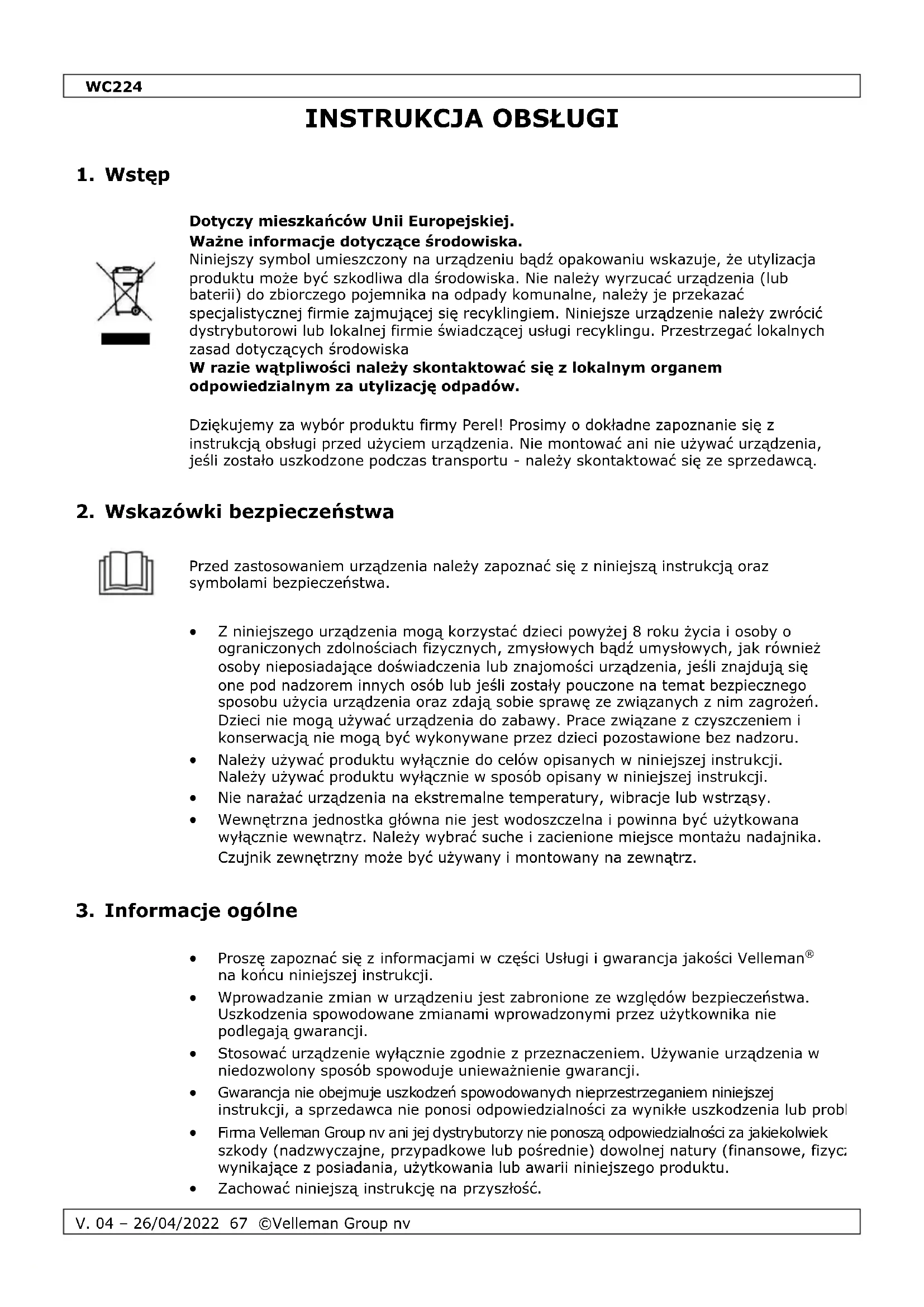 INSTRUKCJA OBSŁUGI WC224 Perel