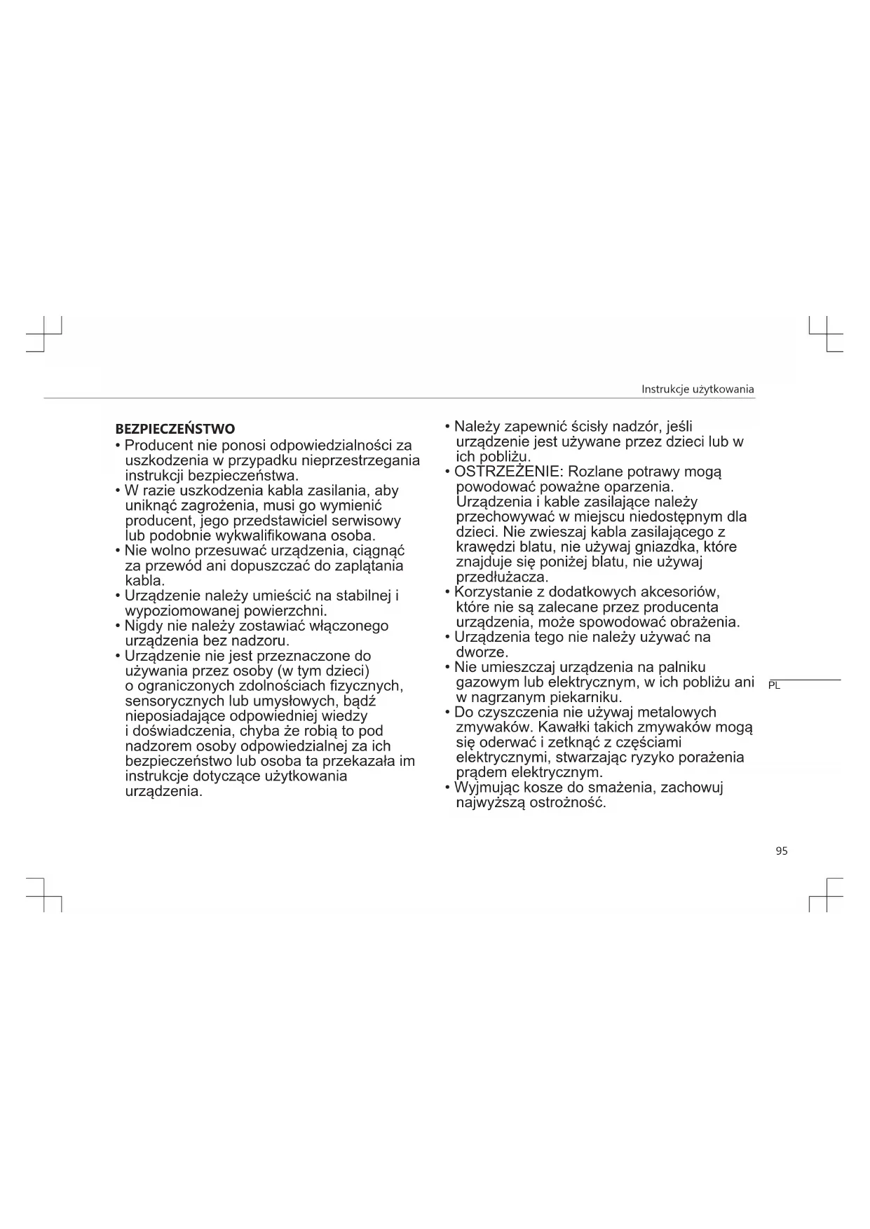 - Wyjmując kosze do smażenia, zachowuj najwyższą ostrożność. PLInstrukcje użytkowania