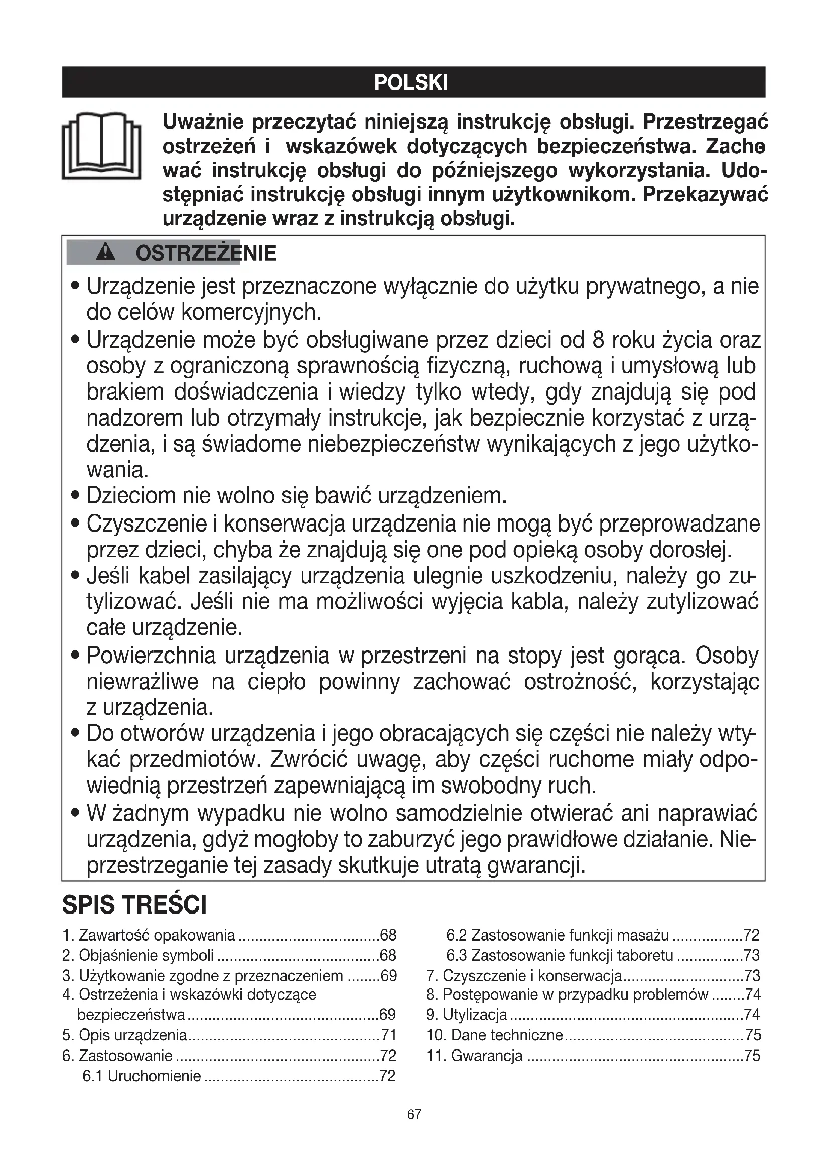Более подробная информация огарантии игарантийных условиях находится вгарантийном талоне, который входит вкомплект поставки. Возможны ошибки иизменения67 Uważnie przeczytać niniejszą instrukcję obsługi. Przestrzegać ostrzeżeń i wskazówek dotyczących bezpieczeństwa. Zacho