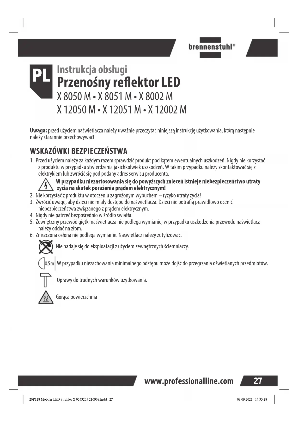 INSTRUKCJA OBSŁUGI professionalLINE X 12050 M BRENNENSTUHL