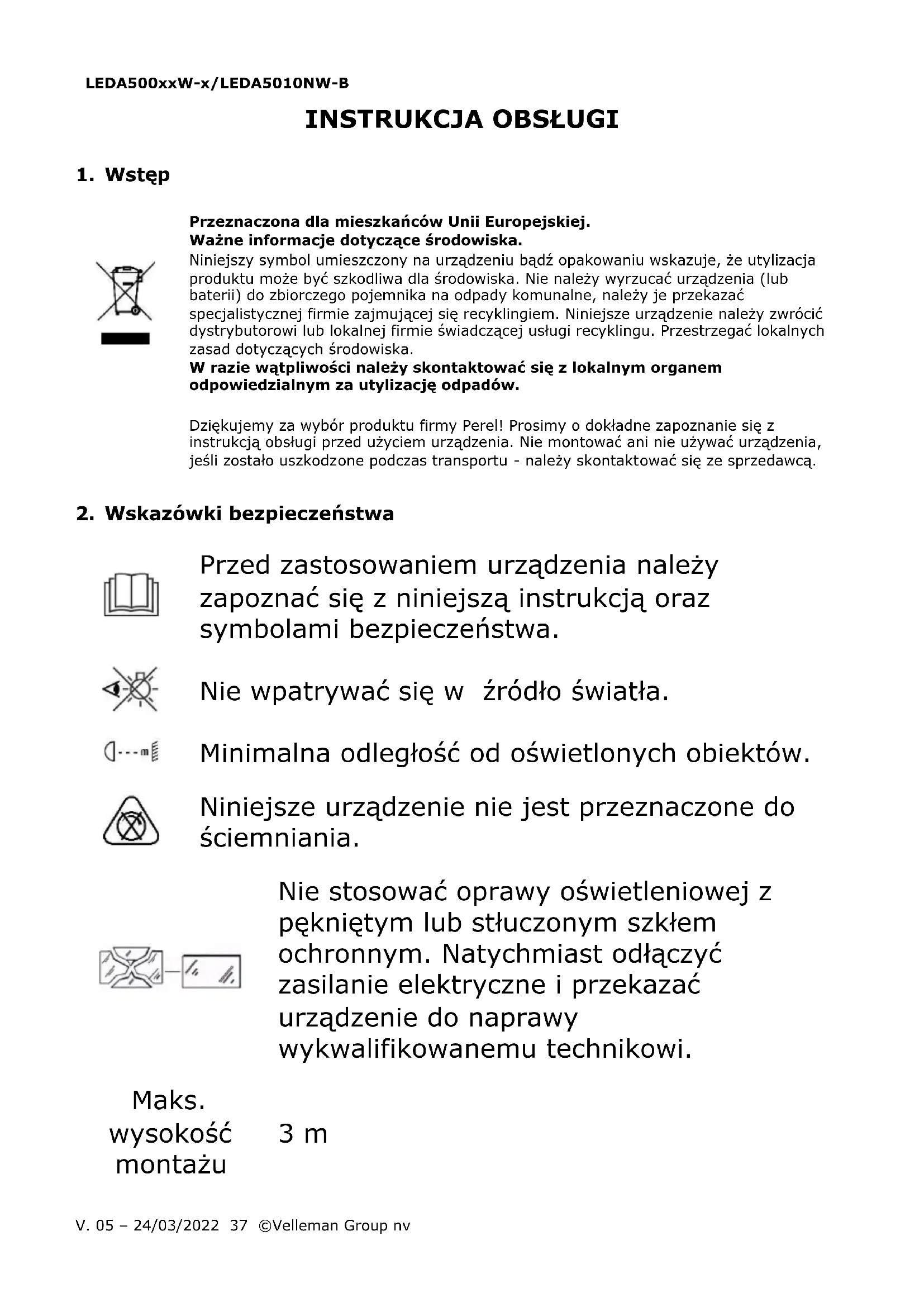 INSTRUKCJA OBSŁUGI LEDA5002WWB Perel