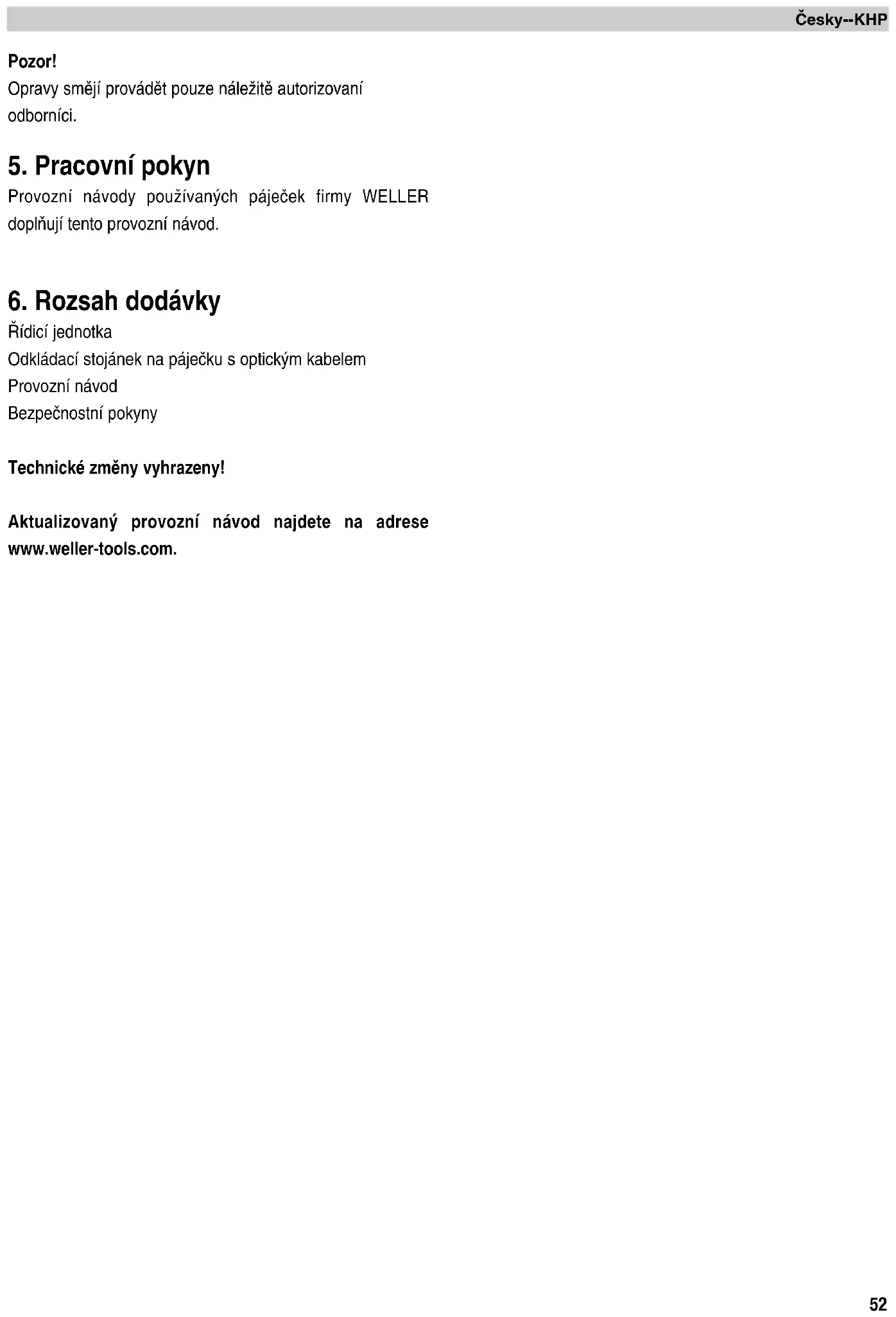 Sterownik Podstawka lutownicy ze Êwiat∏owodem Przewód sieciowy Wskazówki bezpieczeƒstwa Zmiany techniczne zastrze˝one! Zaktualizowane instrukcje obs∏ugi znajdujà si´ pod adresem: www.weller-tools.com!Dzi kujemy za zaufanie okazane nam przy zakupie Weller Podstawka Stop + Go KHP / KHP 81. Za podstaw produkcji przyj to surowe wymogi jakoÊciowe, które gwarantujà poprawne dzia∏anie urzàdzenia.