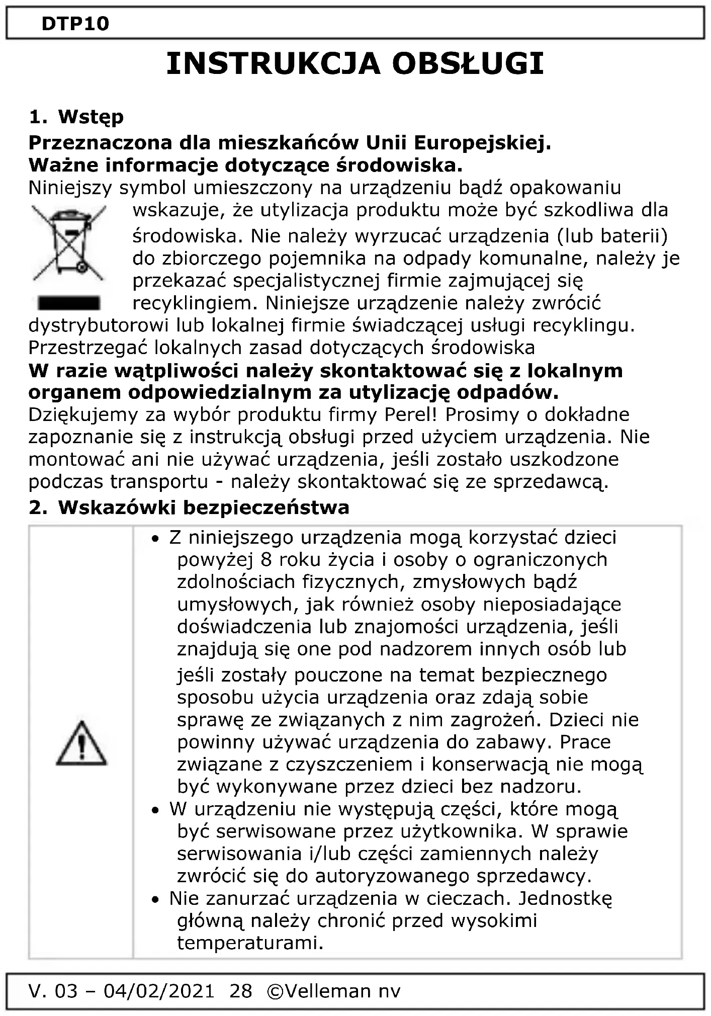 INSTRUKCJA OBSŁUGI DTP10 VELLEMAN