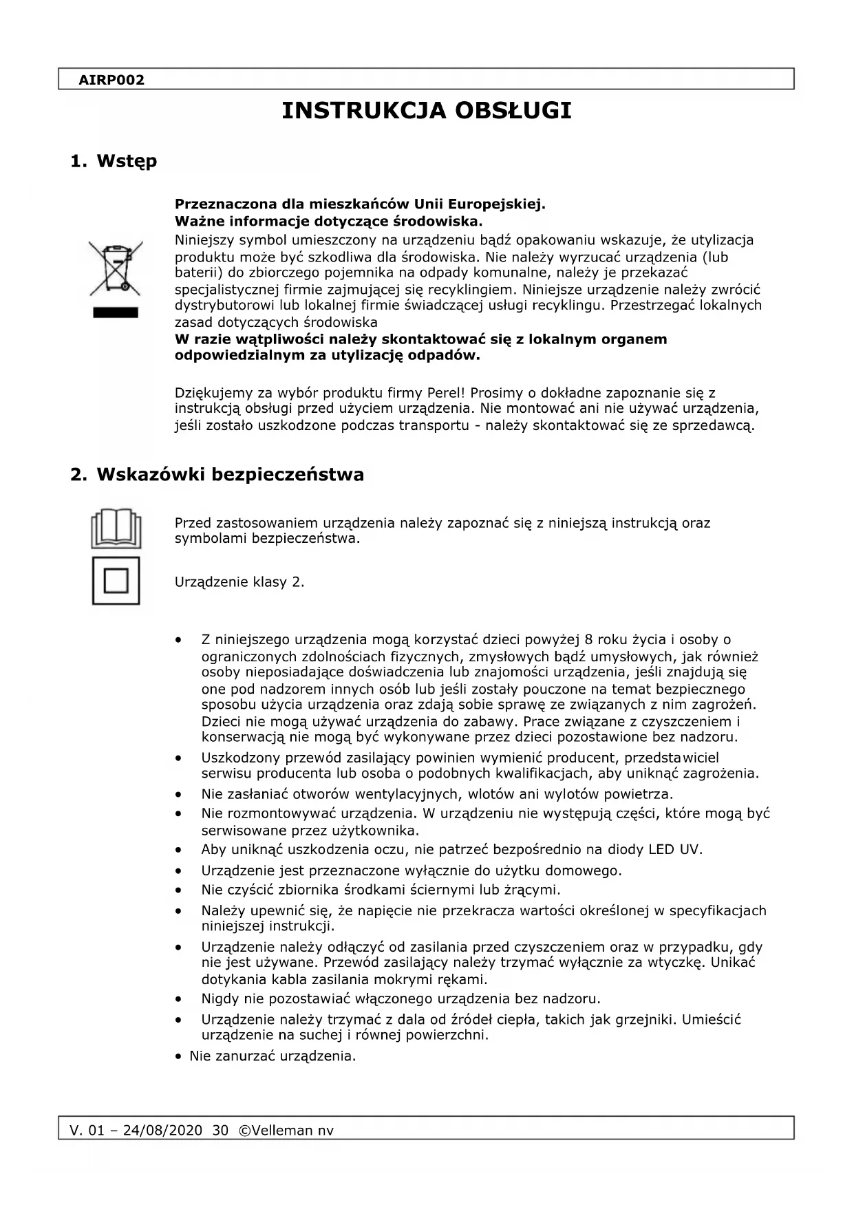 INSTRUKCJA OBSŁUGI AIRP002 Perel