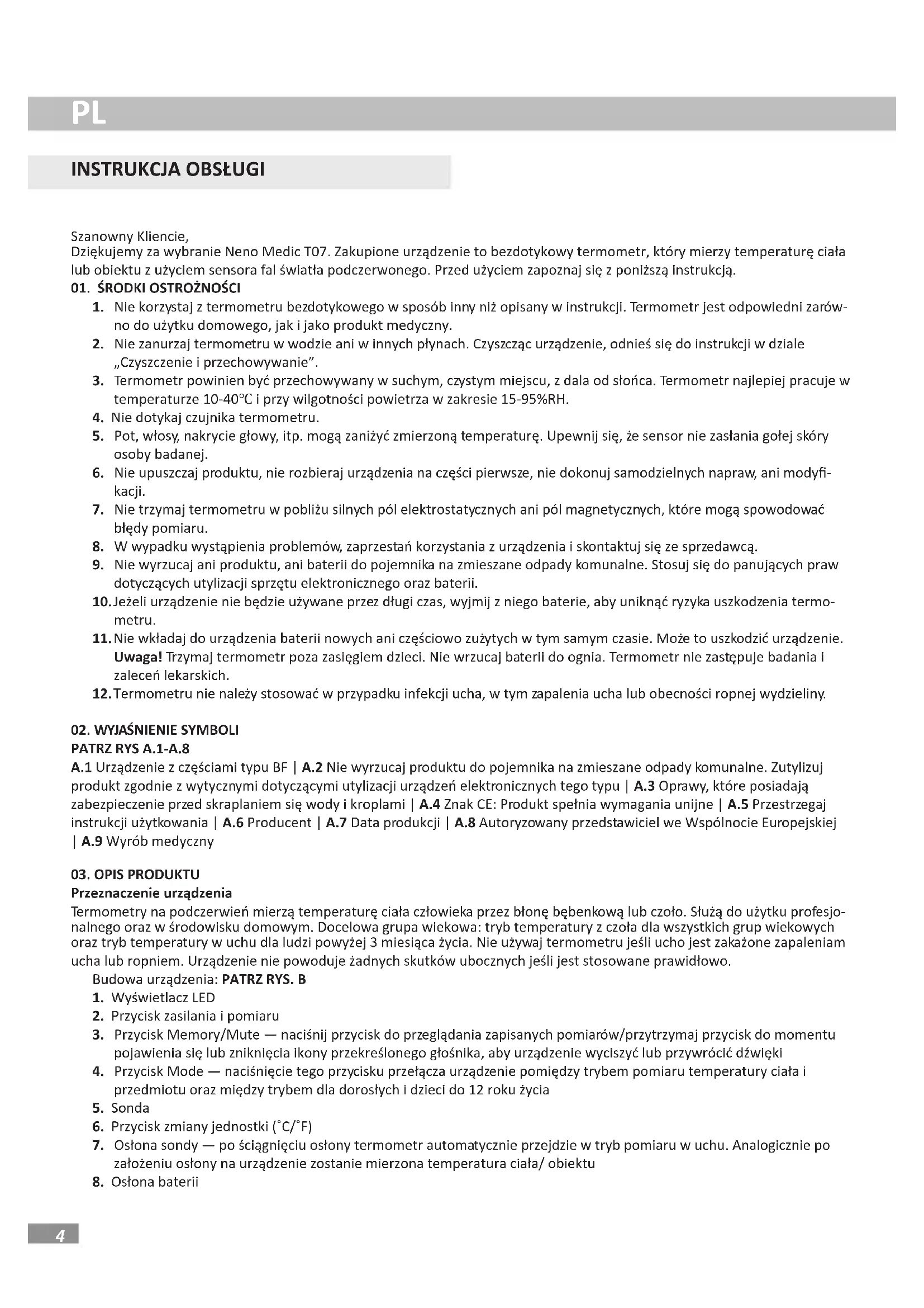 INSTRUKCJA OBSŁUGI Medic T07 Neno