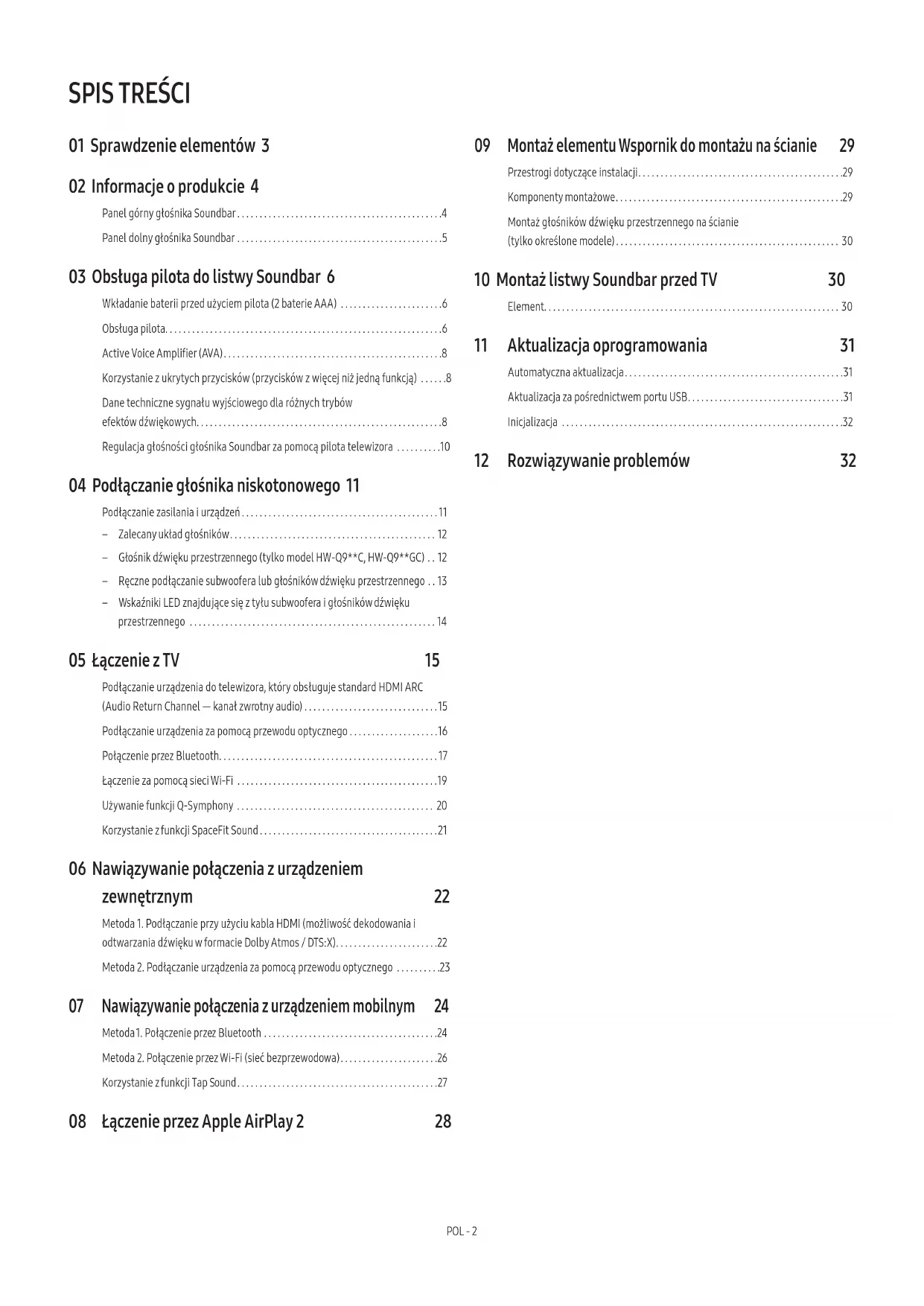 - 08 Łączenie przez Apple AirPlay 2 28 09 Montaż elementu Wspornik do montażu na ścianie 29 Przestrogi dotyczące instalacji p. 29