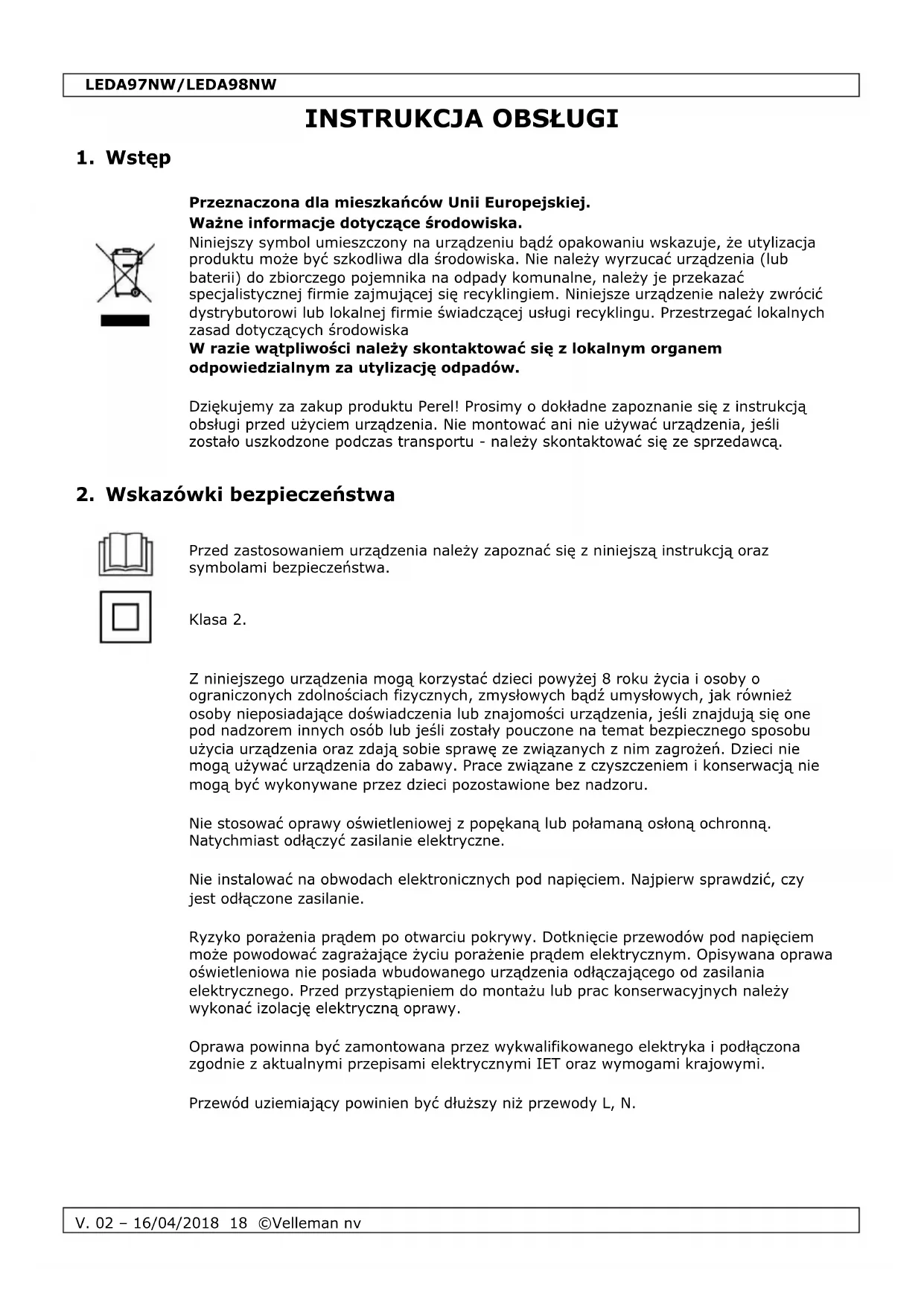 INSTRUKCJA OBSŁUGI LEDA98NW Perel