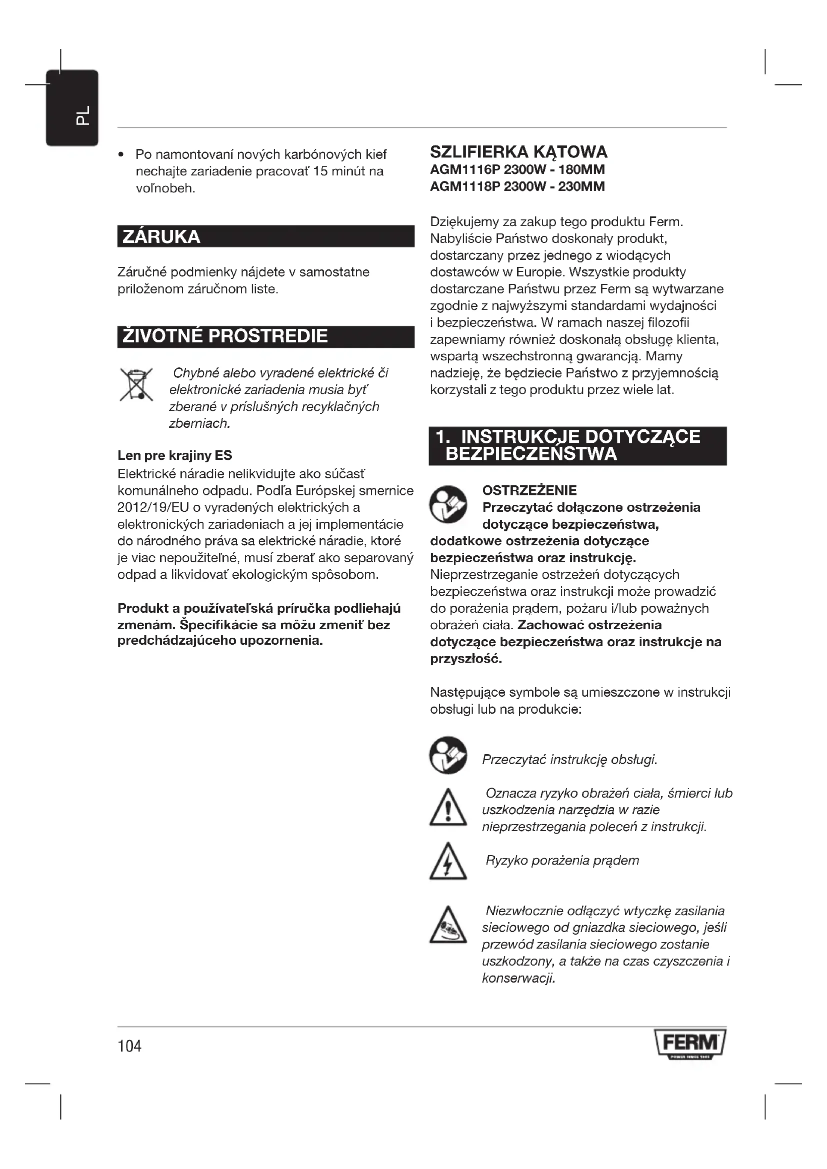 INSTRUKCJA OBSŁUGI AGM1118P Ferm