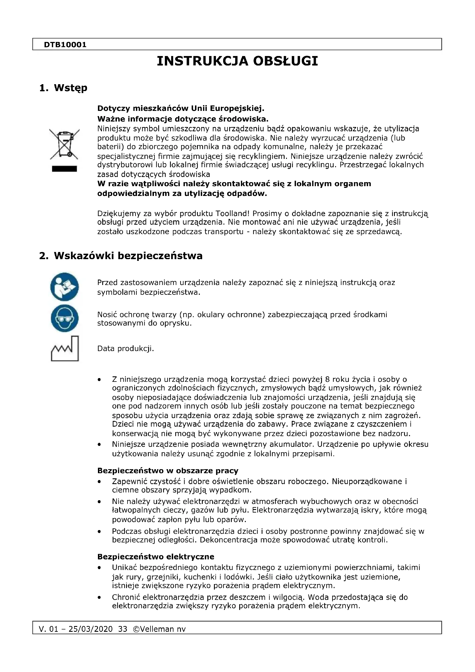 INSTRUKCJA OBSŁUGI DTB10001 Toolland