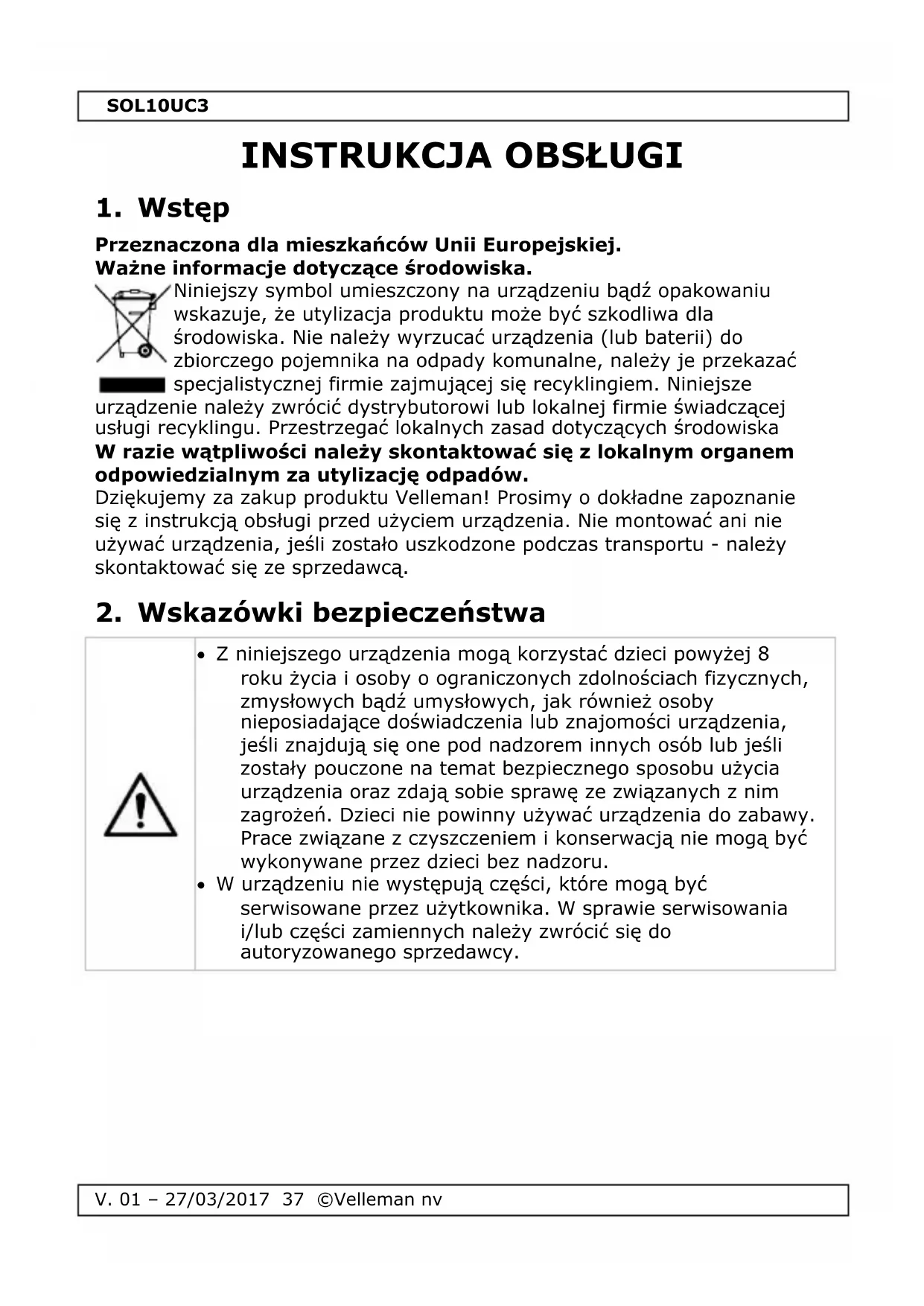 INSTRUKCJA OBSŁUGI SOL10UC3 VELLEMAN