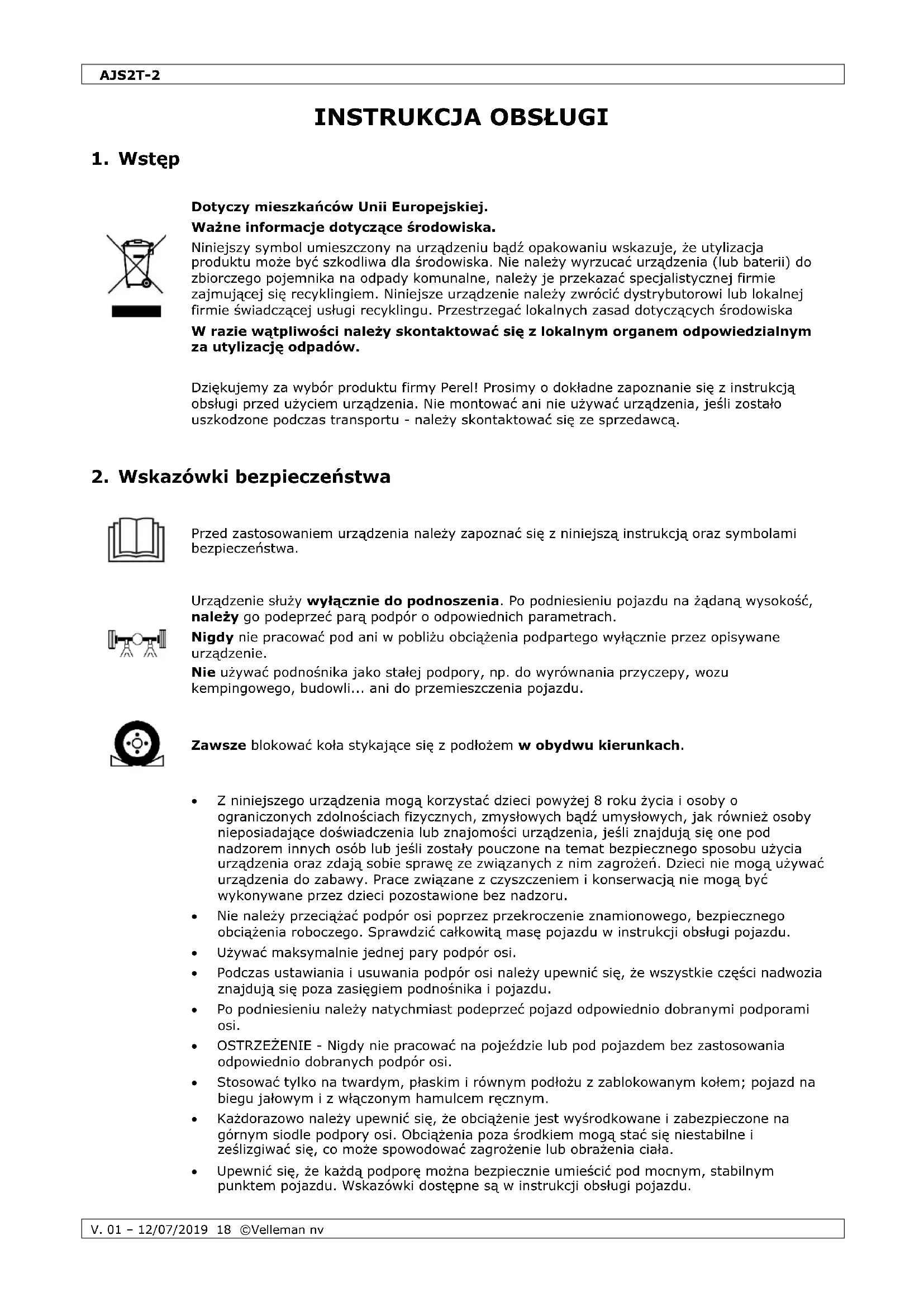 AJS2T2 - Podnośnik Perel - Bezpłatna instrukcja obsługi