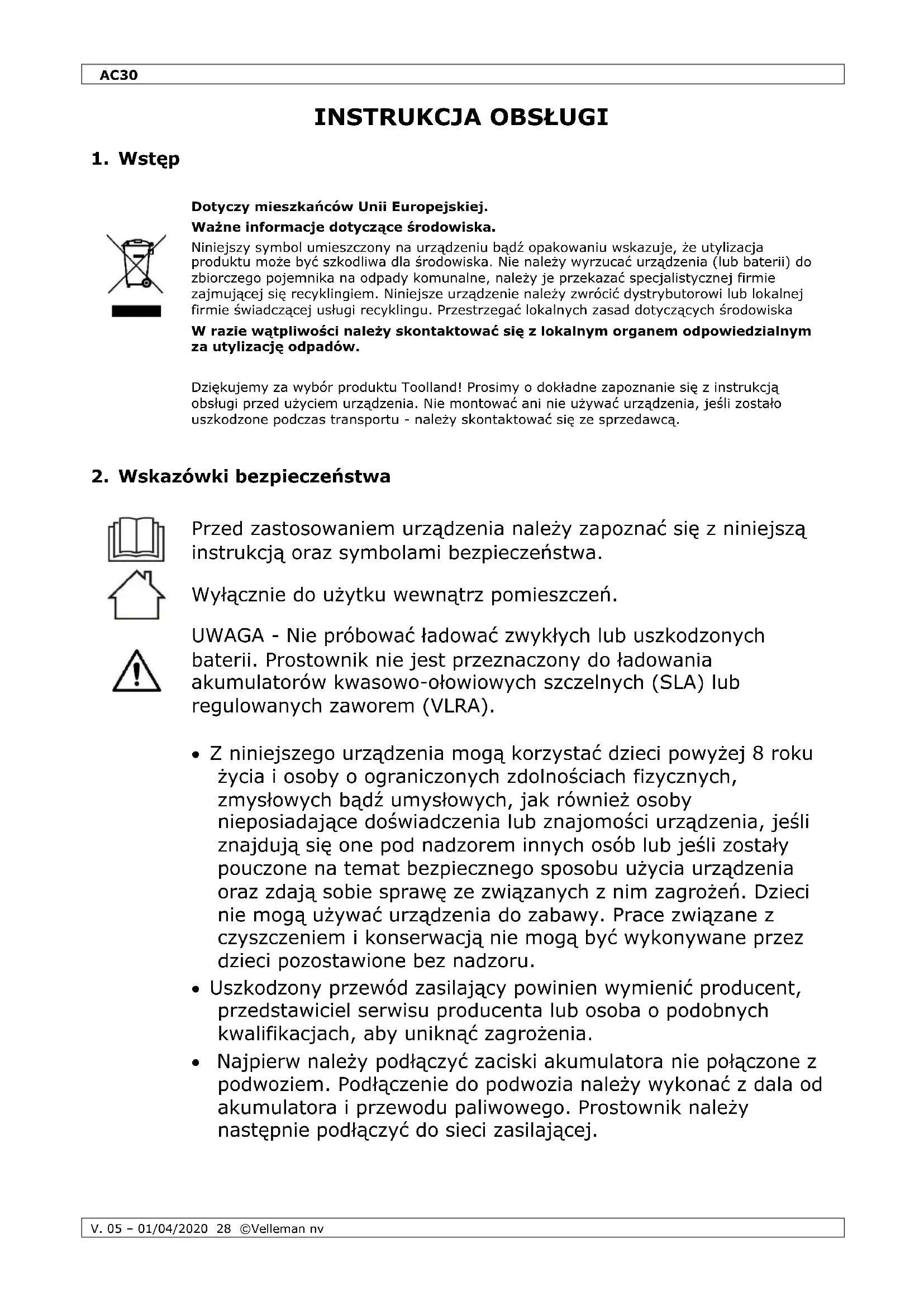 INSTRUKCJA OBSŁUGI AC30 Toolland