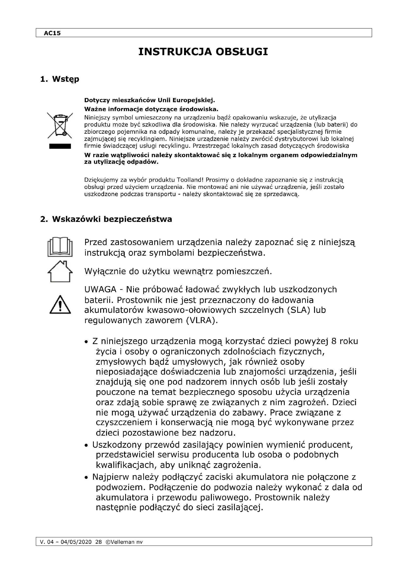 INSTRUKCJA OBSŁUGI AC15 Toolland
