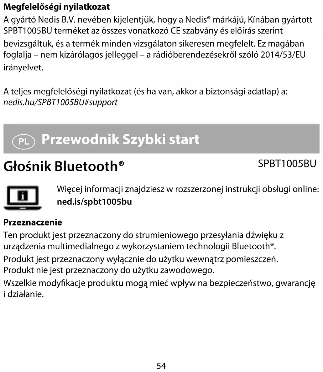 SPBT1005BU - Głośnik NEDIS - Bezpłatna instrukcja obsługi