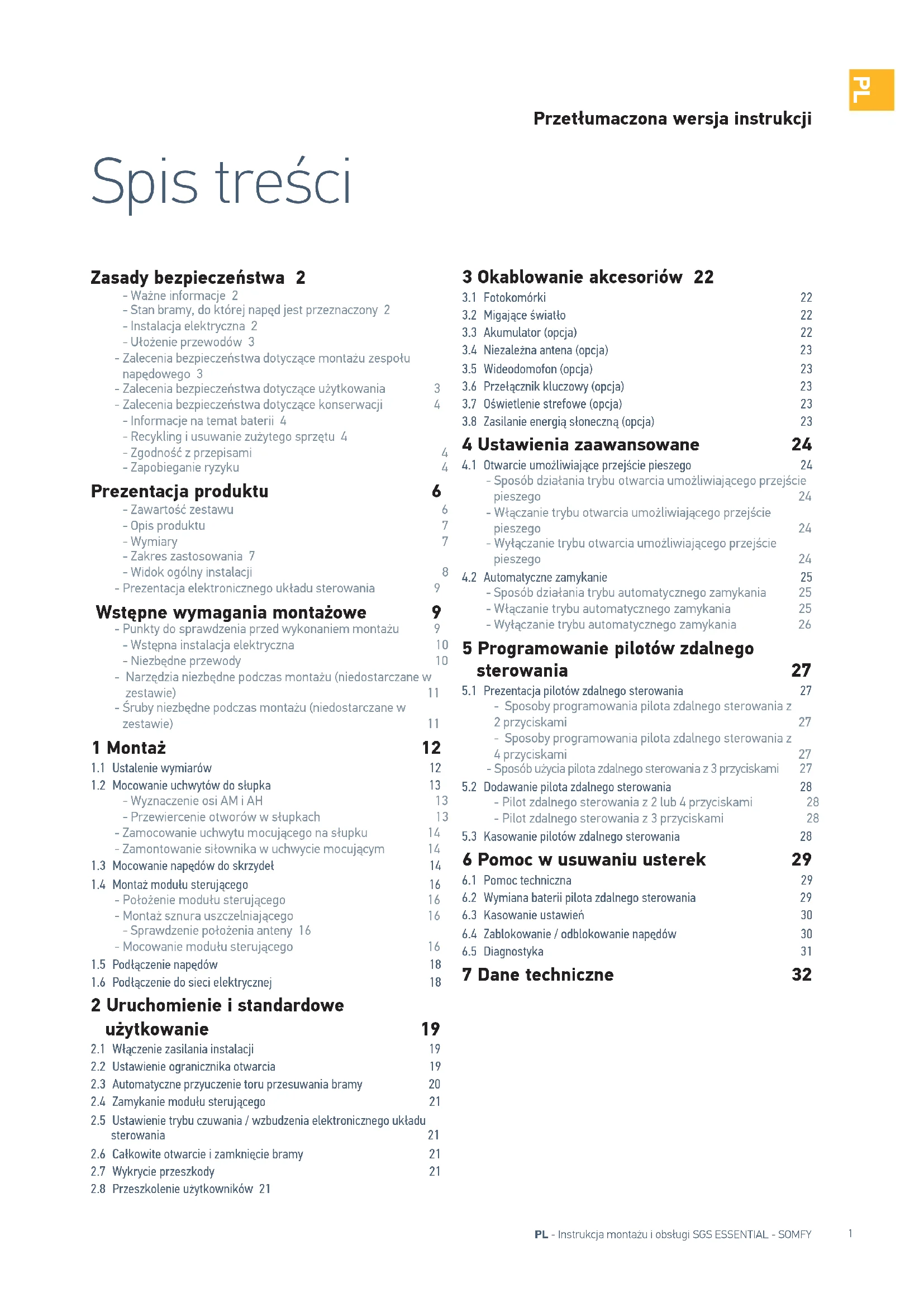 PL - Instrukcja montażu i obsługi SGS ESSENTIAL - SOMFY