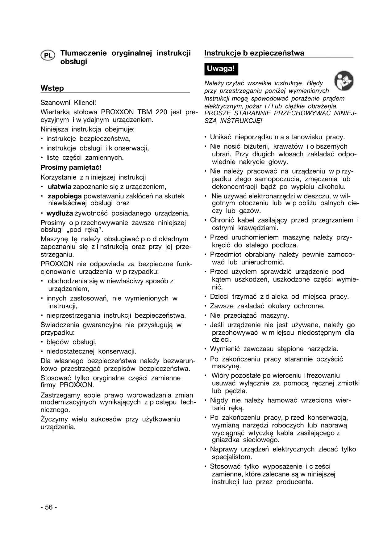 INSTRUKCJA OBSŁUGI TBM 220 PROXXON