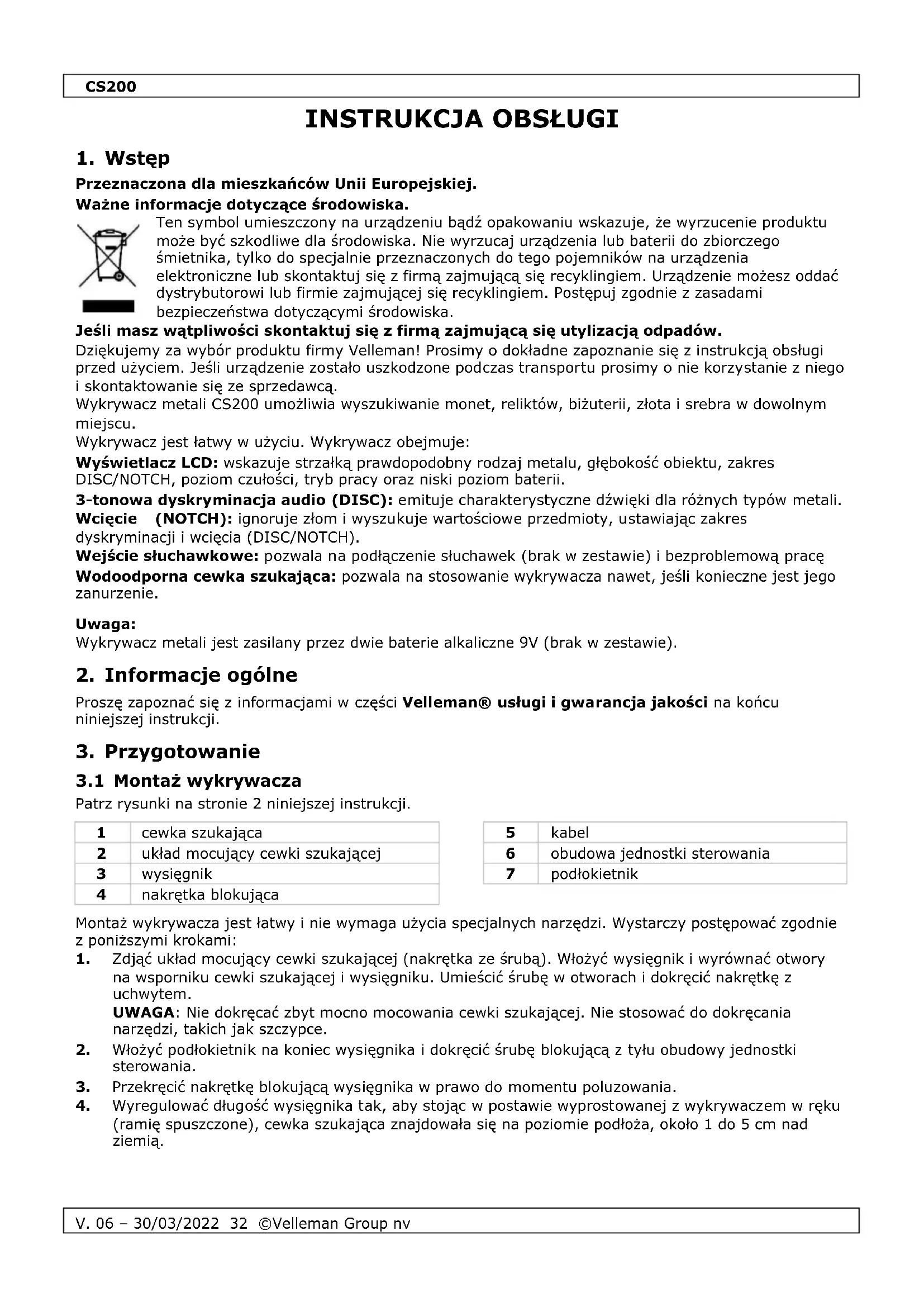 Znajdź bezpłatnie instrukcję urządzenia CS200 VELLEMAN w formacie PDF.