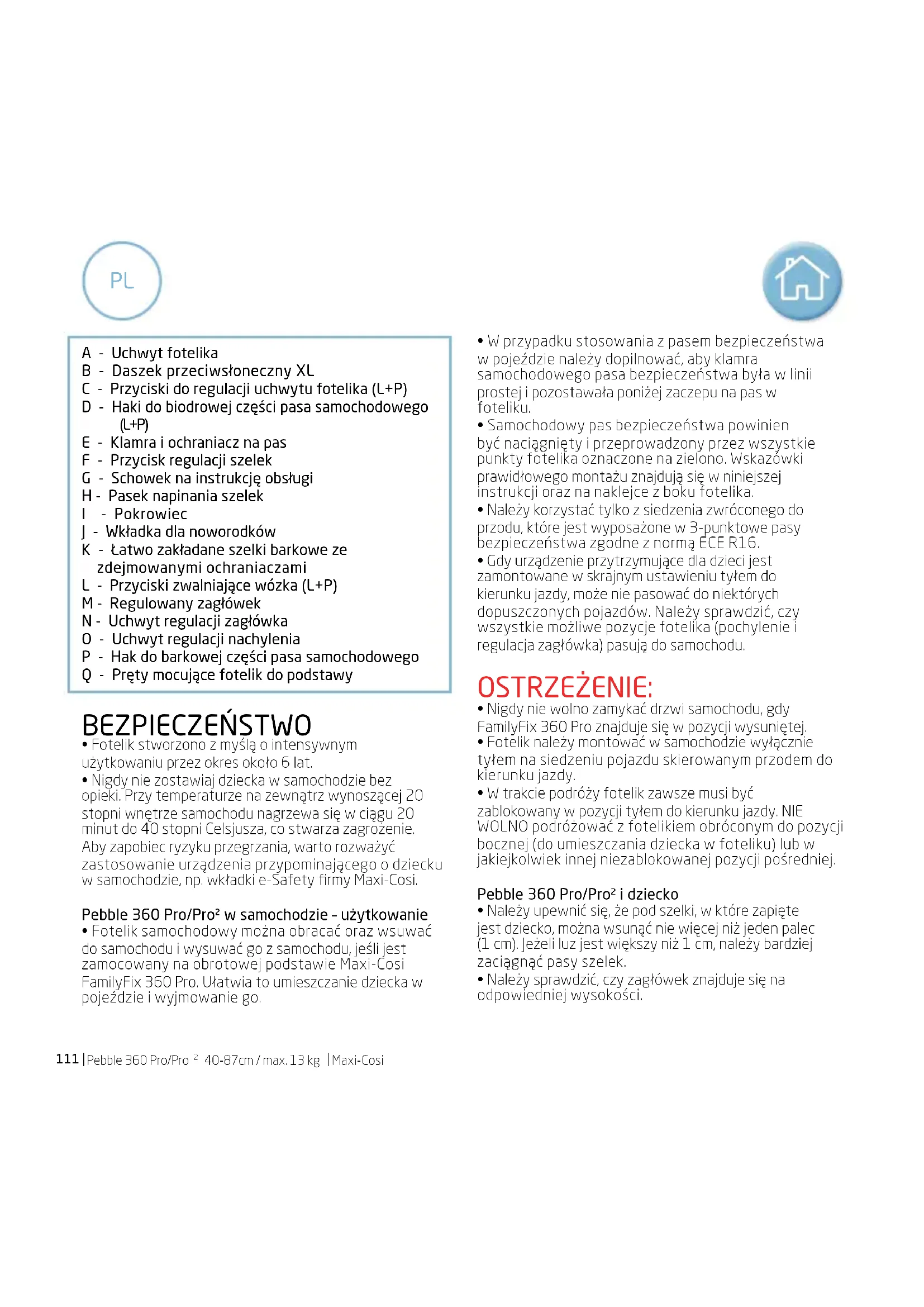 - W przypadku nieprzestrzegania instrukcji montażu i obsługi produkt nie zapewni dziecku bezpieczeństwa.113