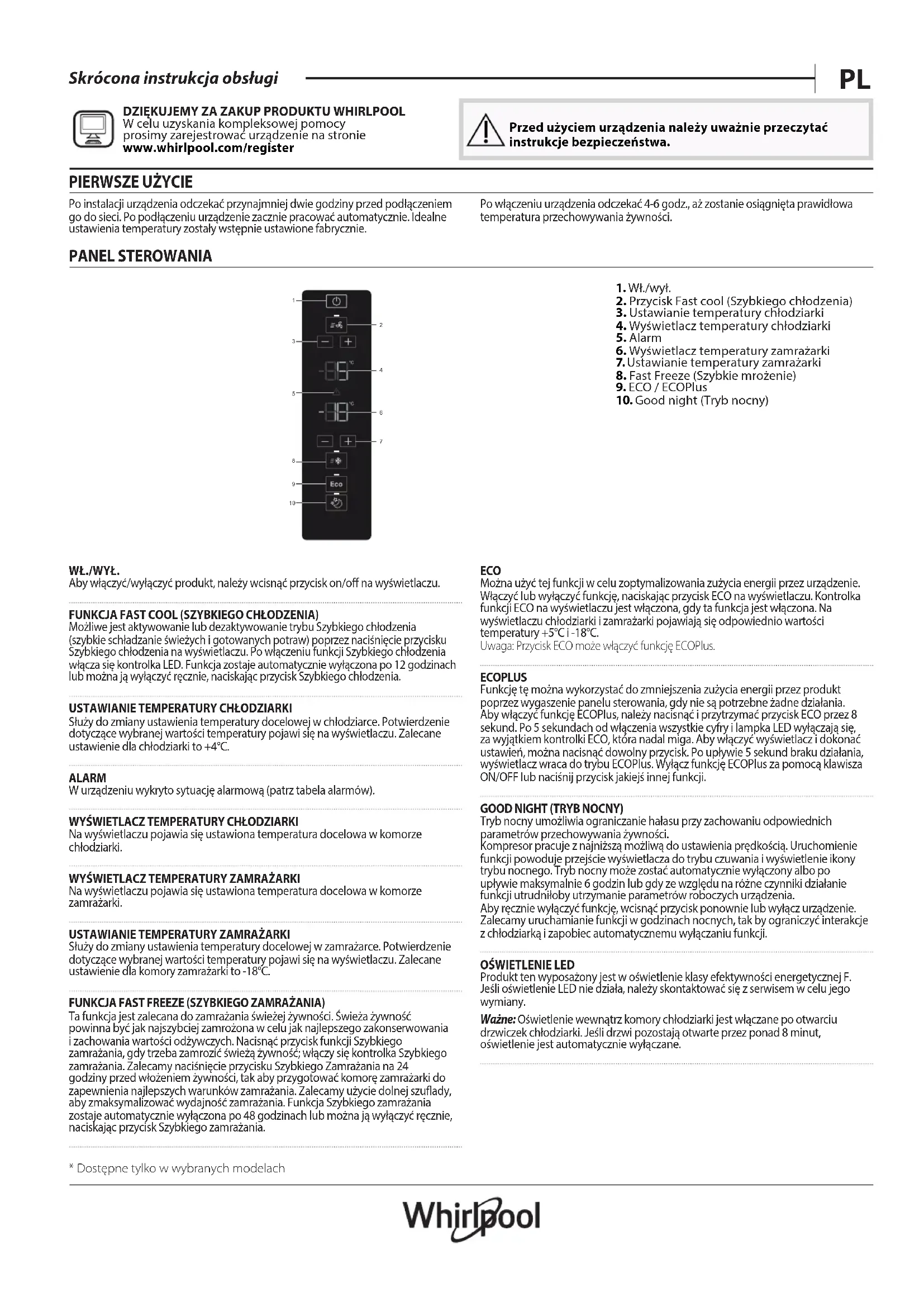W celu uzyskania kompleksowej pomocy prosimy zarejestrować urządzenie na stronie www . whirlpool . com/ register Przed użyciem urządzenia należy uważnie przeczytać instrukcje bezpieczeństwa.