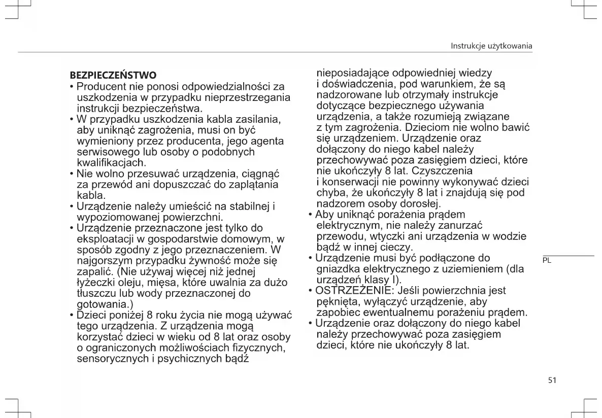 - Urządzenie oraz dołączony do niego kabel należy przechowywać poza zasięgiem dzieci, które nie ukończyły 8 lat. PLInstrukcje użytkowania