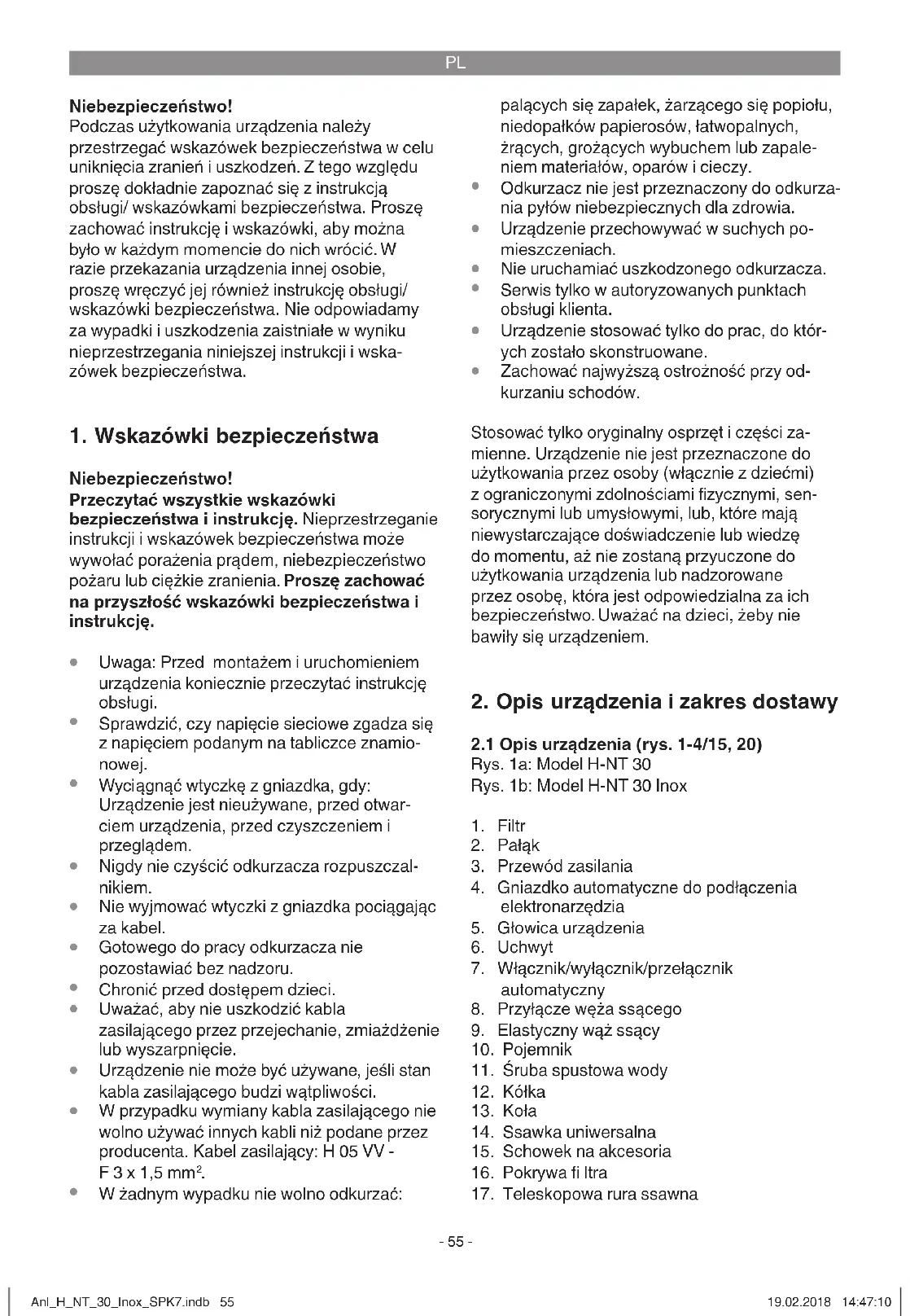 Urządzenie i wyposażenie dodatkowe przechowywać w miejscu ciemnym, suchym i wolnym od przemarzania, zabezpieczyć przed dziećmi. Optymalna temperatura przechowywani 5 do 30˚C. Przechowywać urządzenie w oryginal- nym opakowaniu. Anl_H_NT_30_Inox_SPK7.indb 59Anl_H_NT_30_Inox_SPK7.indb 59 19.02.2018 14:47:1019.02.2018 14:47:10PL