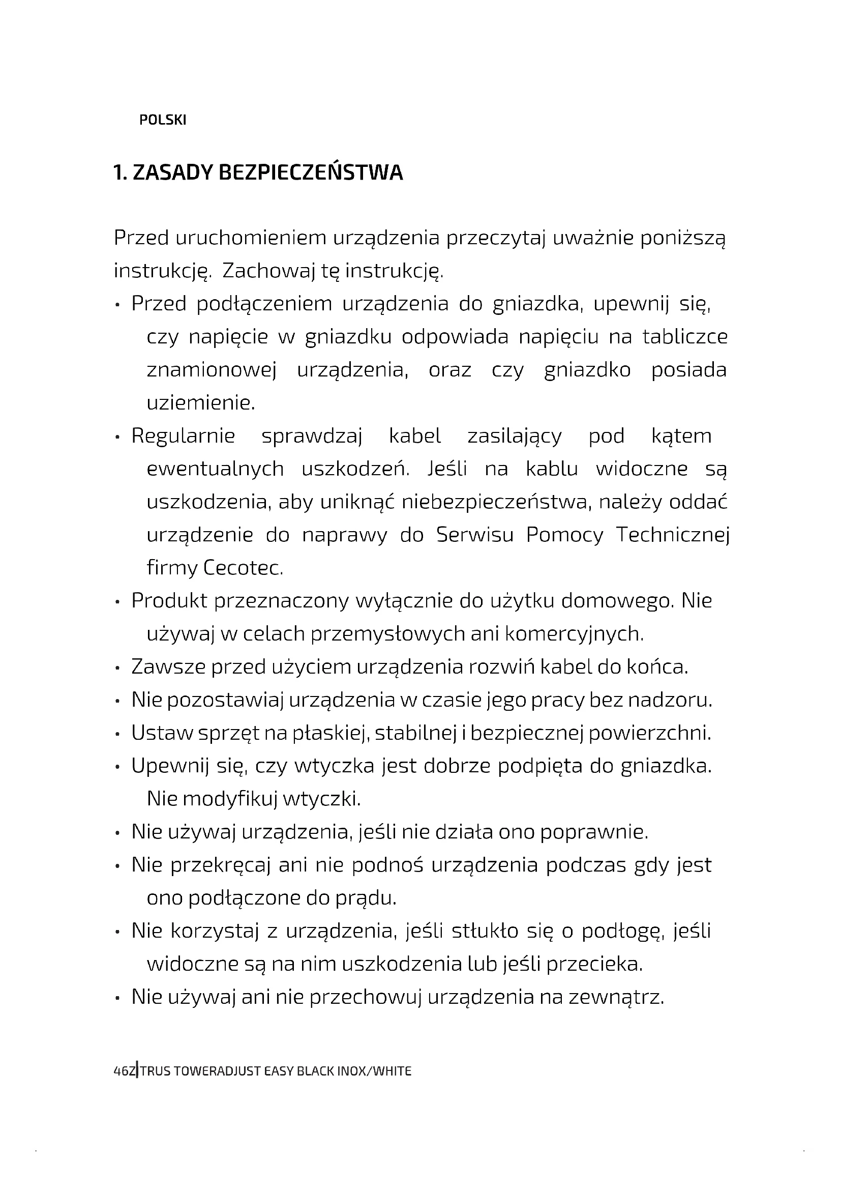 - Nie używaj ani nie przechowuj urządzenia na zewnątrz.47ZITRUS TOWERADJUST EASY BLACK INOX/WHITE POLSKI
