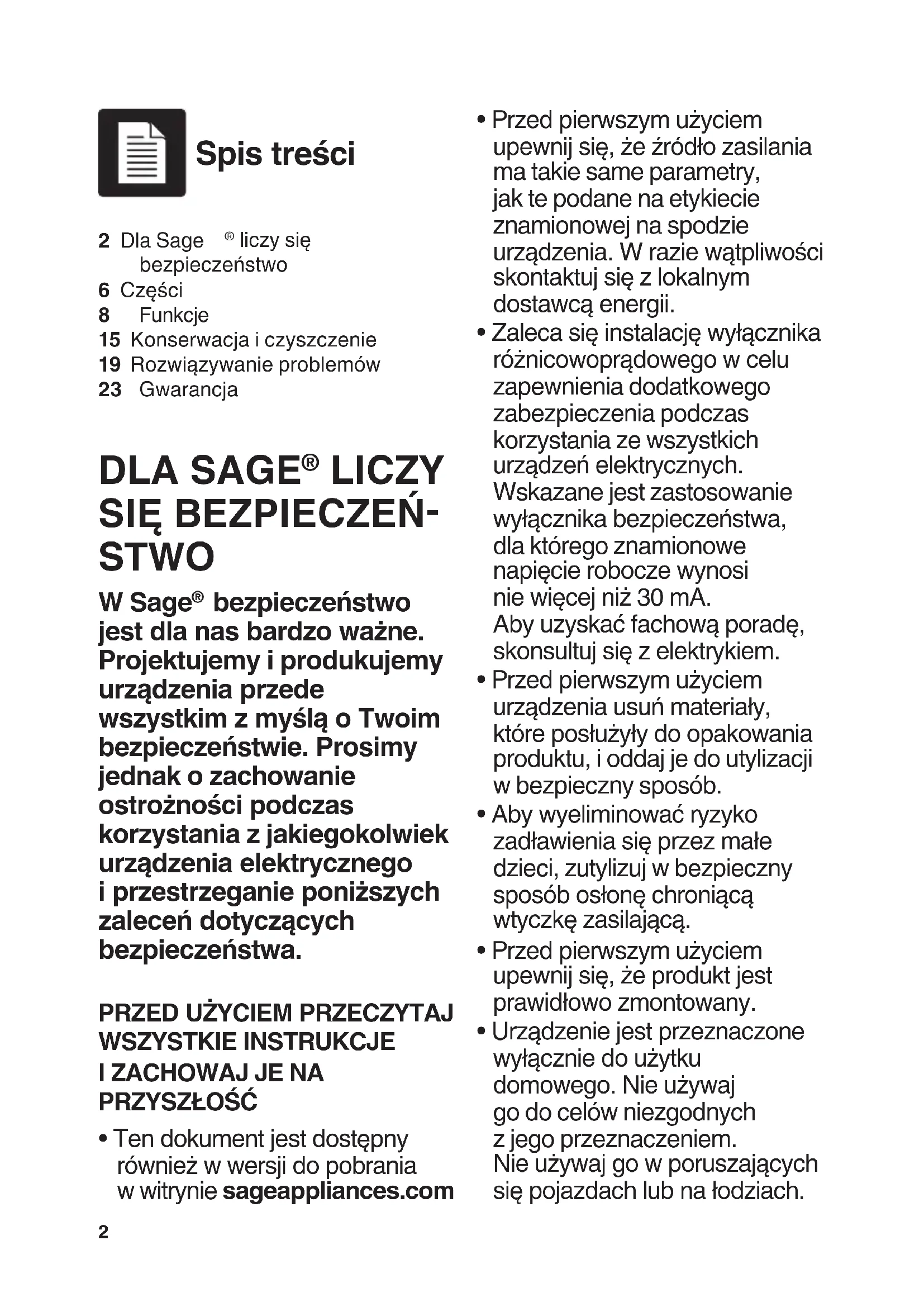 - Ten dokument jest dostępny również w wersji do pobrania w witrynie sageappliances.com