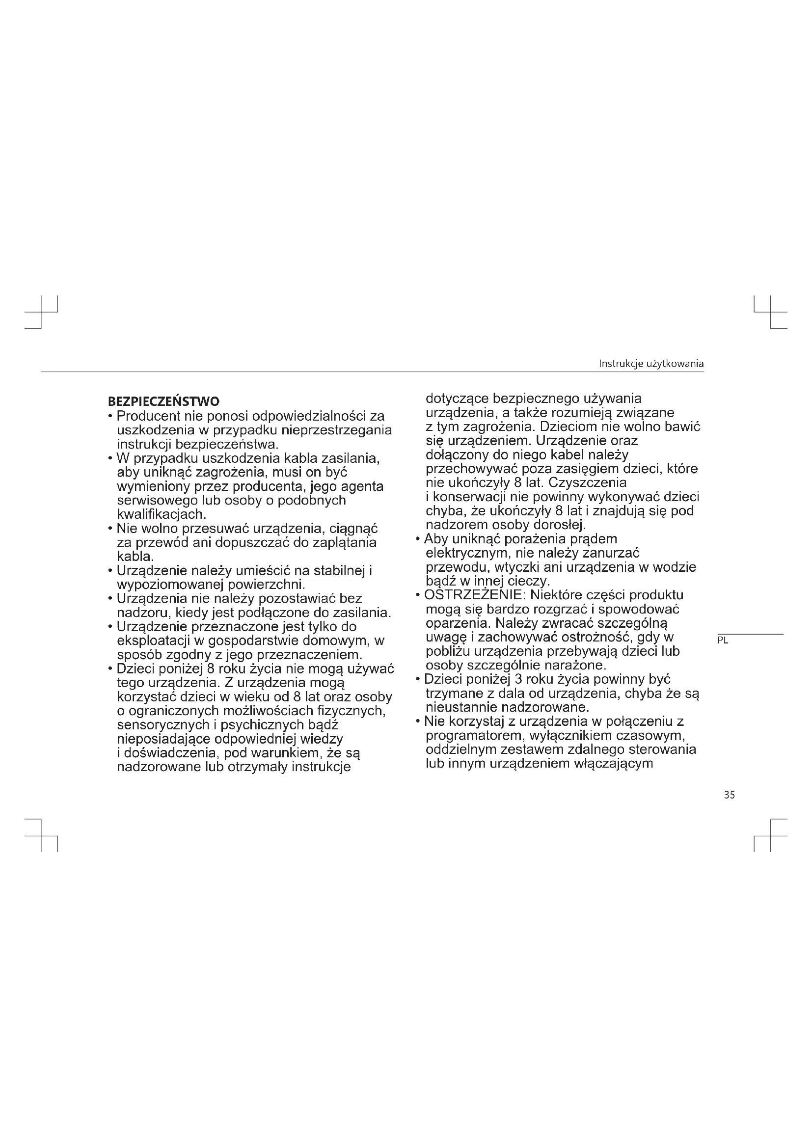 - Dzieci poniżej 8 roku życia nie mogą używać tego urządzenia. Zurządzenia mogą korzystać dzieci wwieku od 8 lat oraz osoby oograniczonych możliwościach fizycznych, sensorycznych ipsychicznych bądź nieposiadające odpowiedniej wiedzy idoświadczenia, pod warunkiem, że są nadzorowane lub otrzymały instrukcje dotyczące bezpiecznego używania urządzenia, atakże rozumieją związane ztym zagrożenia. Dzieciom nie wolno bawić się urządzeniem. Urządzenie oraz dołączony do niego kabel należy przechowywać poza zasięgiem dzieci, które nie ukończyły 8 lat. Czyszczenia ikonserwacji nie powinny wykonywać dzieci chyba, że ukończyły 8 lat iznajdują się pod nadzorem osoby dorosłej.