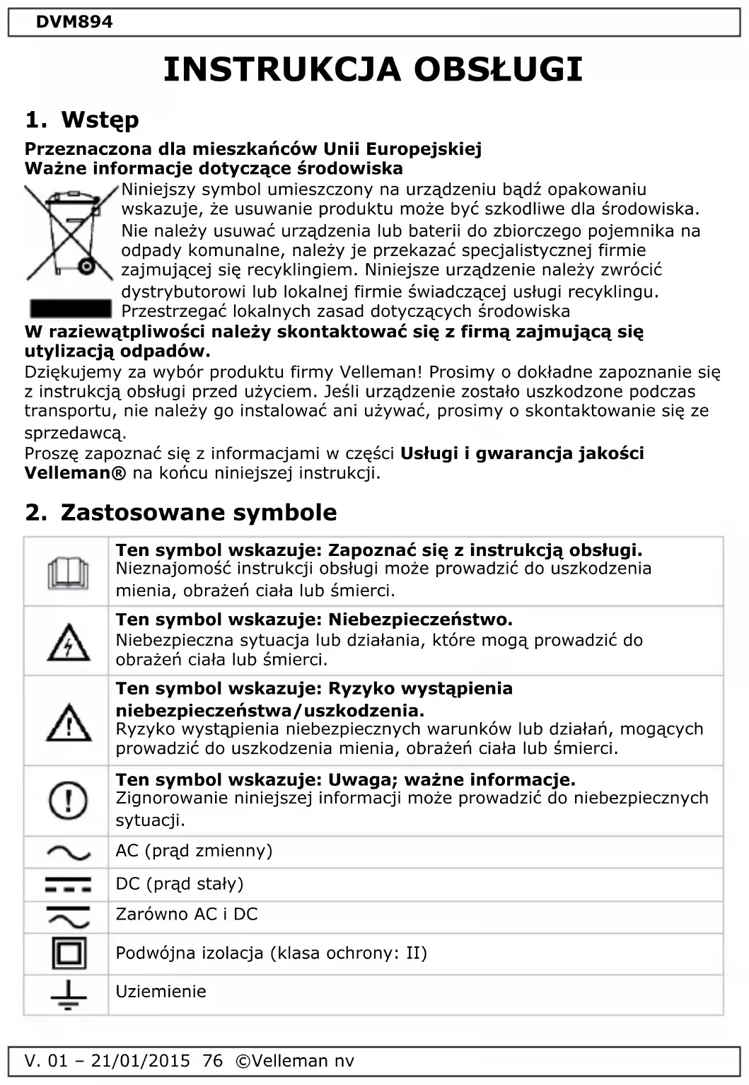 Pobierz instrukcję dla swojego Multimetr w formacie PDF za darmo! Znajdź swoją instrukcję DVM894 - VELLEMAN i weź swoje urządzenie elektroniczne z powrotem w ręce. Na tej stronie opublikowane są wszystkie dokumenty niezbędne do korzystania z urządzenia. DVM894 marki VELLEMAN.