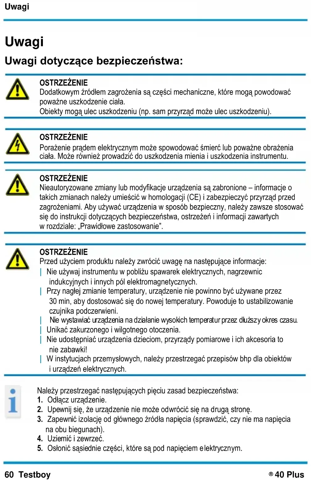 INSTRUKCJA OBSŁUGI 40 Plus Testboy