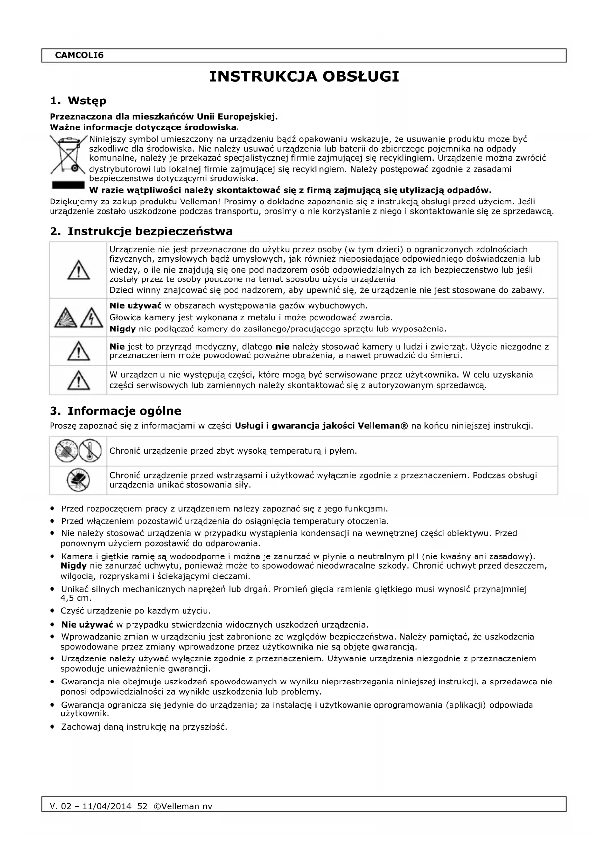 INSTRUKCJA OBSŁUGI CAMCOLI6 VELLEMAN