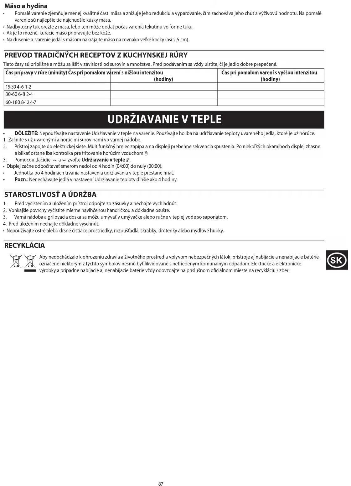 - Uwaga: Nie trzymaj żywności na ustawieniu podtrzymywania temperatury dłużej niż 4 godziny.