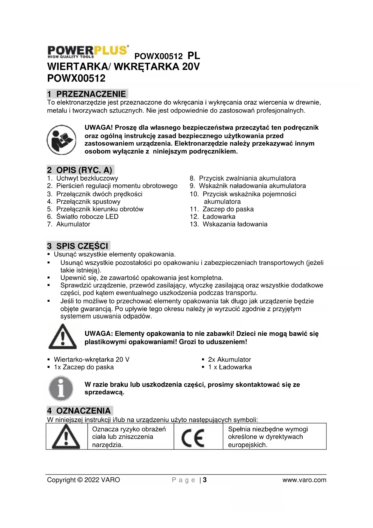 Spełnia niezbędne wymogi określone w dyrektywach europejskich.POWX00512 PL Copyright © 2022 VARO P a g e | 4 www.varo.com