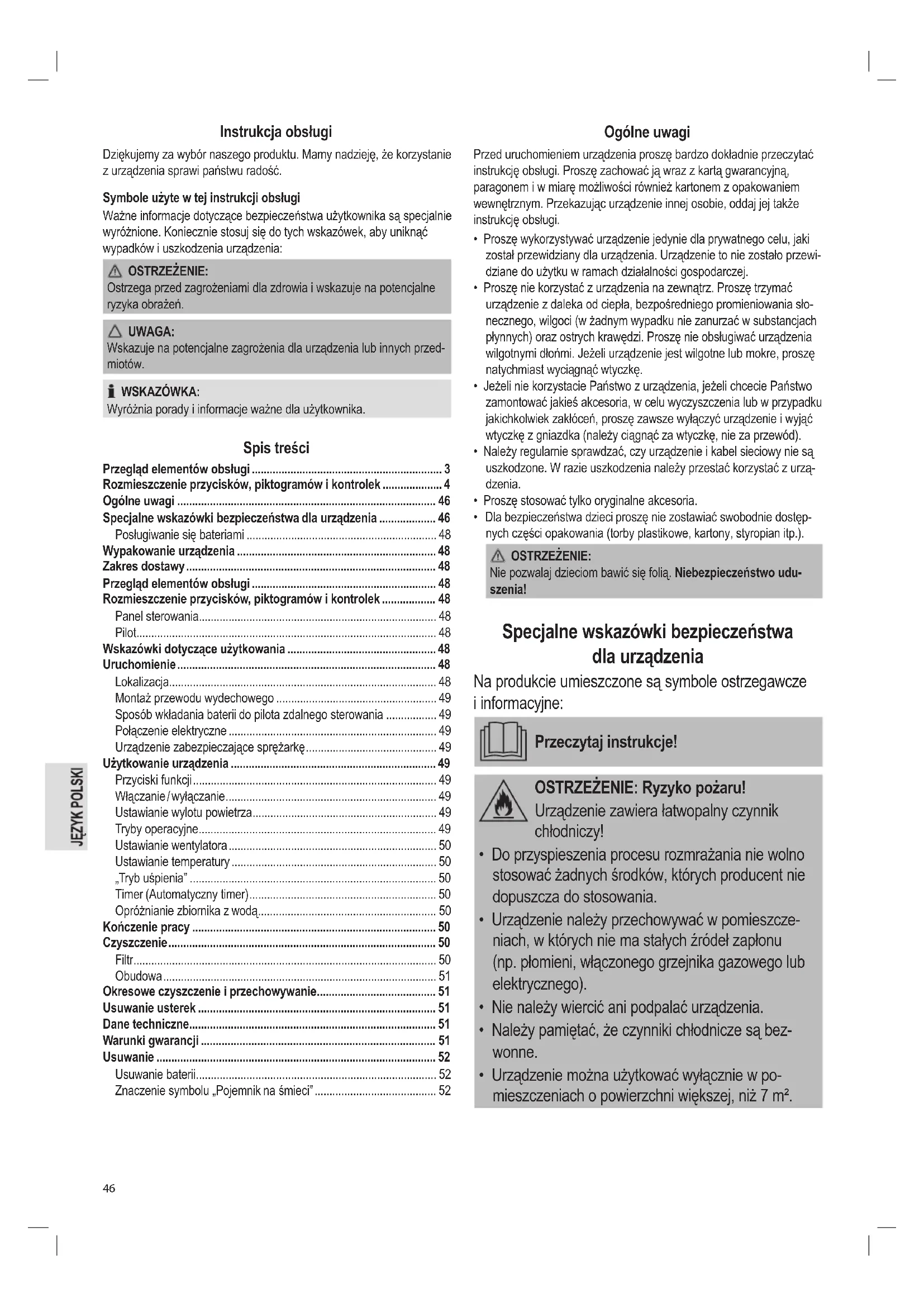 - Specjalne wskazówki bezpieczeństwa dla urządzenia p. 46