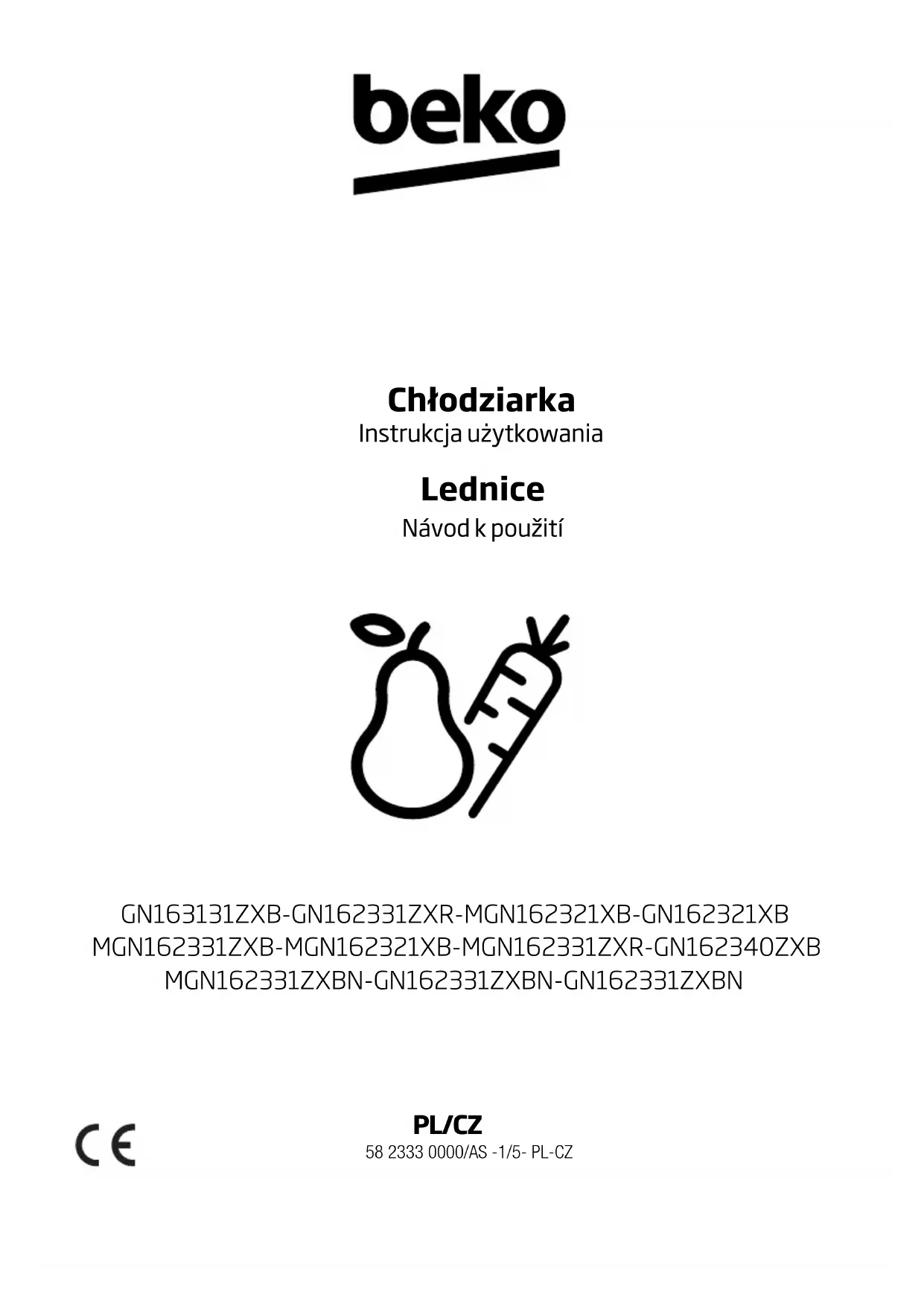 GN162331ZXBN - Lodówka BEKO - Bezpłatna instrukcja obsługi