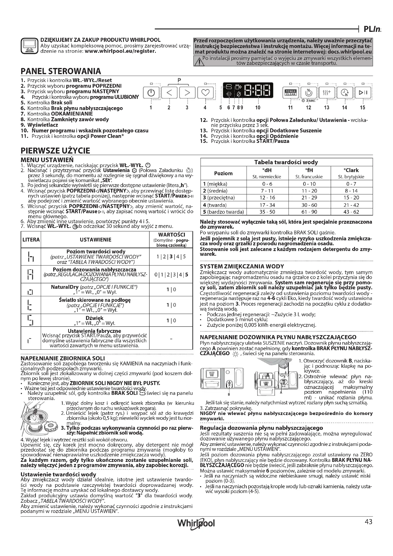 W7I HP42 LO - Zmywarki WHIRLPOOL - Bezpłatna instrukcja obsługi