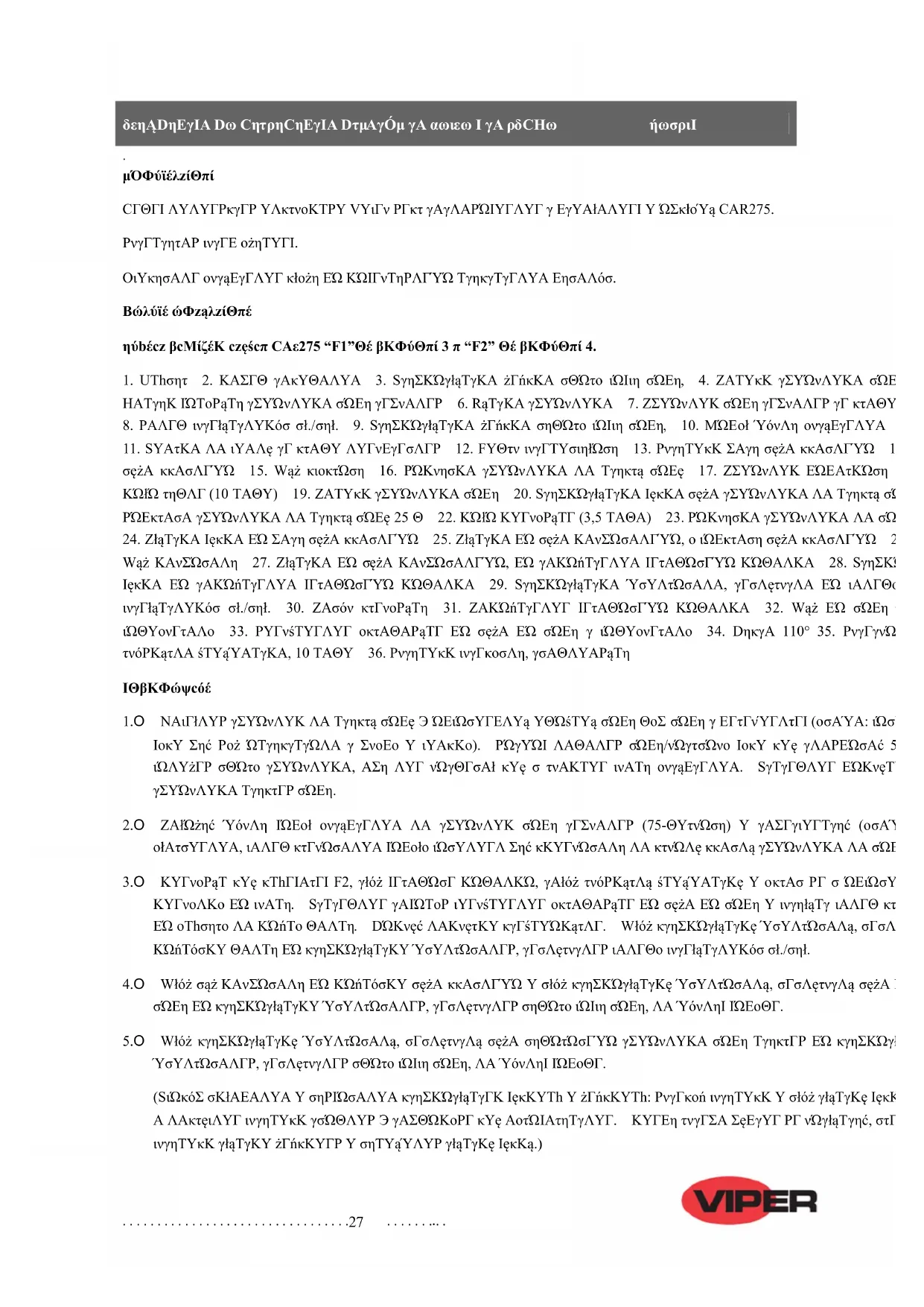INSTRUKCJA OBSŁUGI Viper CAR275 NILFISK