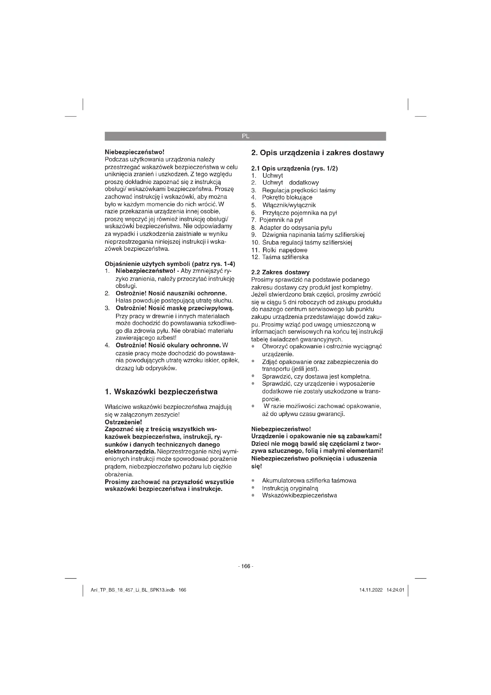 drgań ramion i dłoni, w przypadku, gdy urządzenie jest używane przez dłuższy czas lub w niewłaściwy sposób i bez przeglądów. Anl_TP_BS_18_457_Li_BL_SPK13.indb 167Anl_TP_BS_18_457_Li_BL_SPK13.indb 167 14.11.2022 14:24:0214.11.2022 14:24:02PL