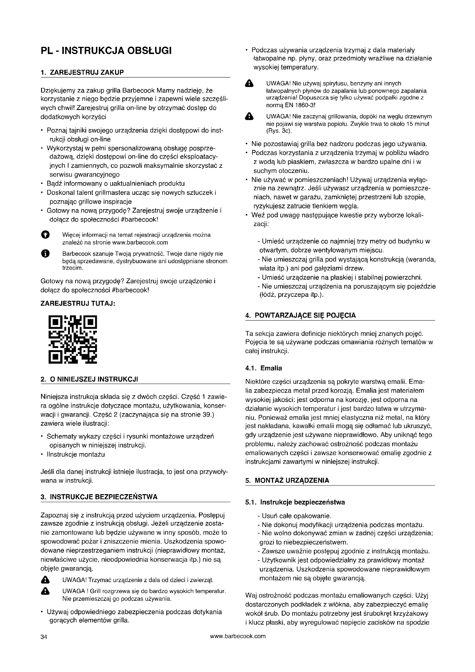 Dziękujemy za zakup grilla Barbecook Mamy nadzieję, że korzystanie z niego będzie przyjemne i zapewni wiele szczęśli- wych chwil! Zarejestruj grilla on-line by otrzymać dostęp do dodatkowych korzyści