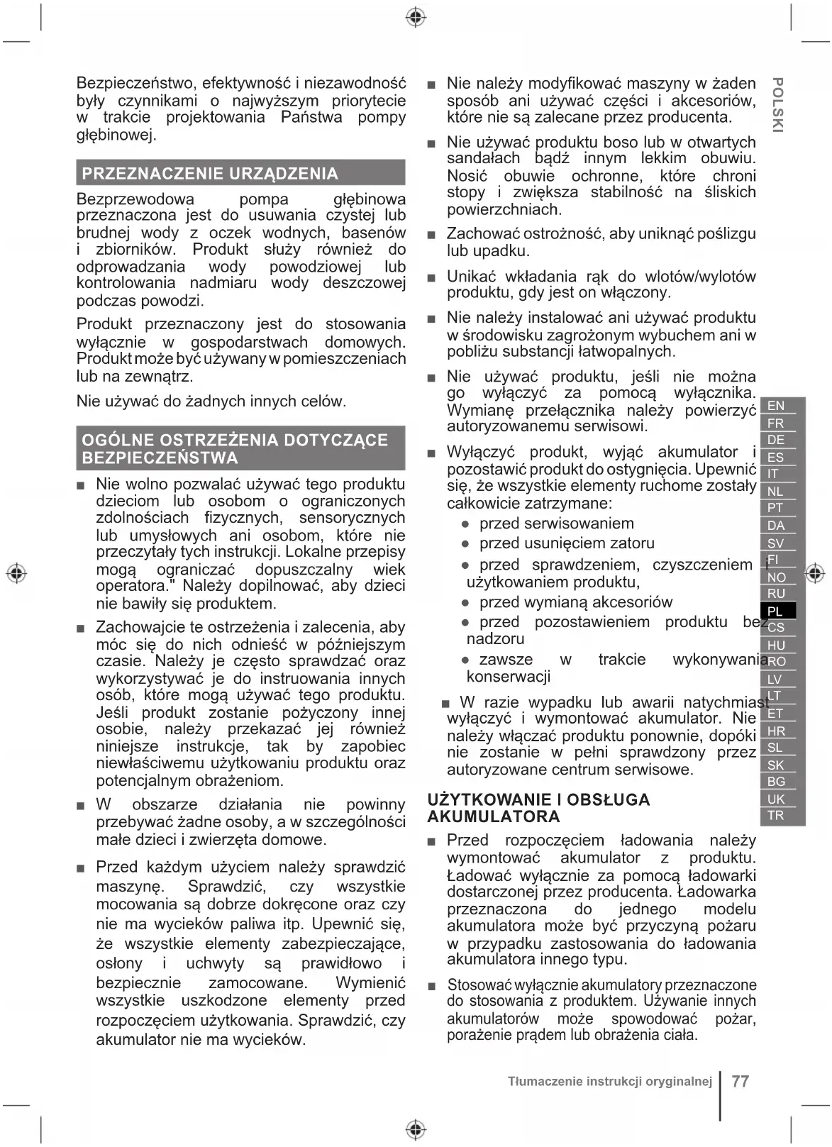 Tłumaczenie instrukcji oryginalnej