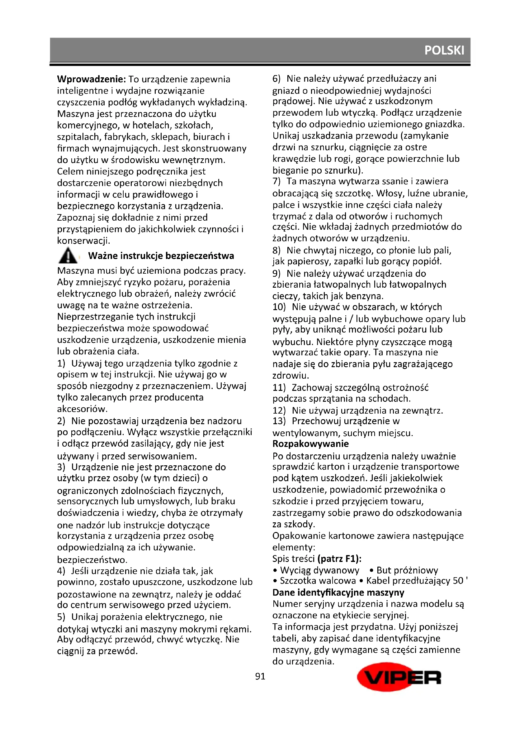 CEX410 - Odkurzacz Viper - Bezpłatna instrukcja obsługi