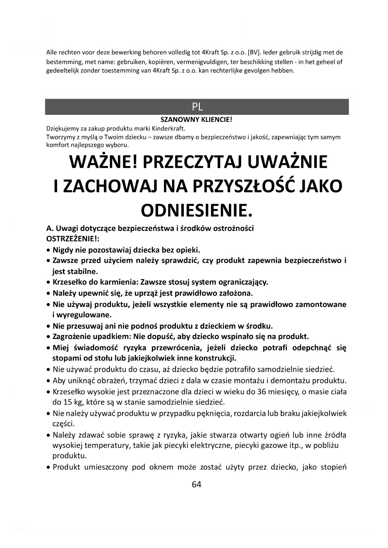 SZANOWNYيKLIENCIE! Dziękujemy za zakup produktu marki Kinderkraft. Tworzymy z myślą o Twoim dziecku – zawsze dbamy o bezpieczeństwo i jakość, zapewniając tym samym komfort najlepszego wyboru.