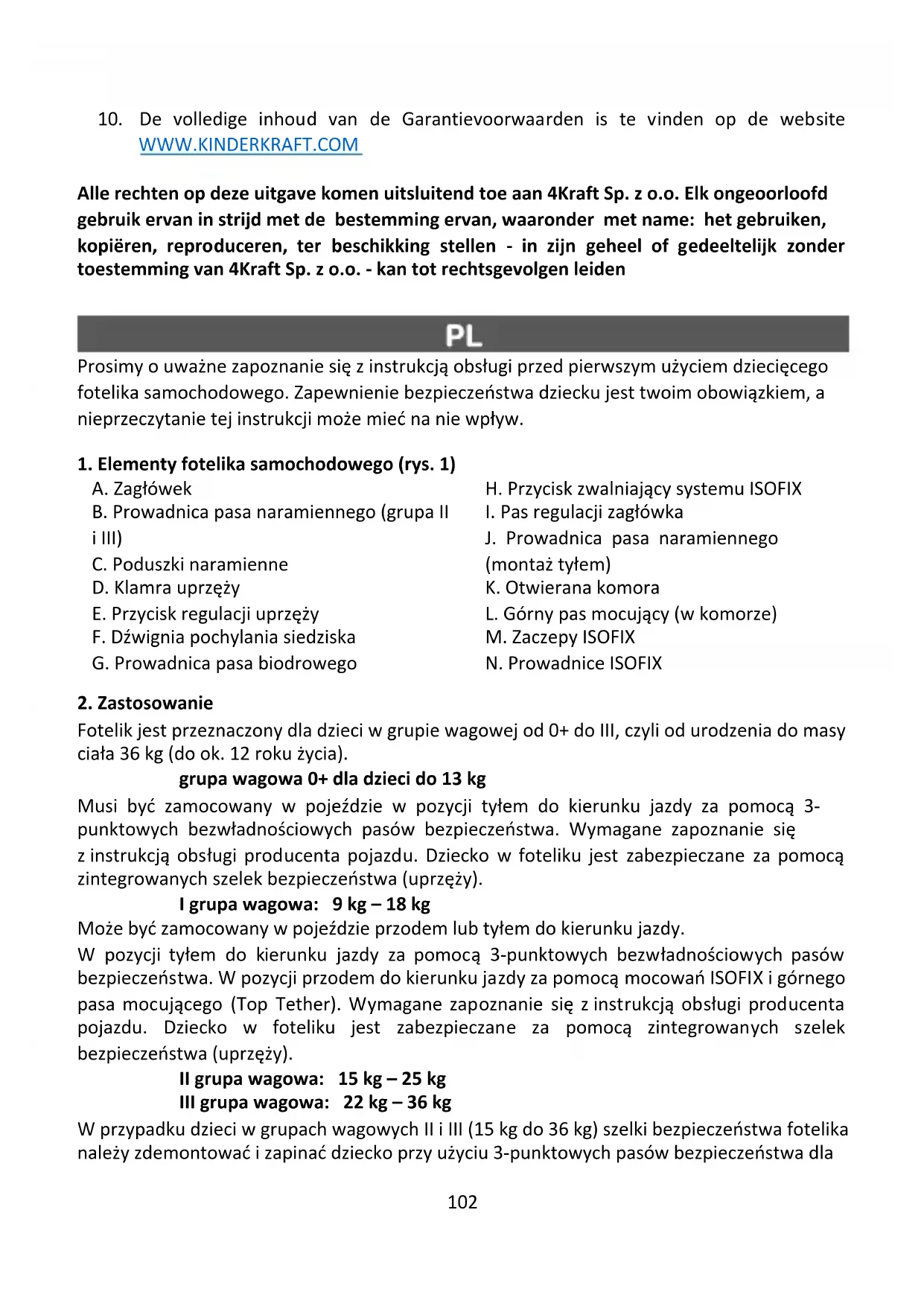 Wszelkie prawa do niniejszego opracowania należą w całości do 4Kraft Sp. z o.o. Jakiekolwiek ich nieuprawnione użycie niezgodnie z ich przeznaczeniem, w tym szczególności: używanie, kopiowanie, powielanie, udostępnianie – w całości lub części bez zgody 4Kraft Sp. z o.o. może skutkować konsekwencjami natury prawnej. Leia com atenção o presente manual de instruções antes da primeira utilização da cadeira auto. Garantir segurança à criança é a sua obrigação, sendo que ao não ler as presentes instruções pode comprometer tal segurança.