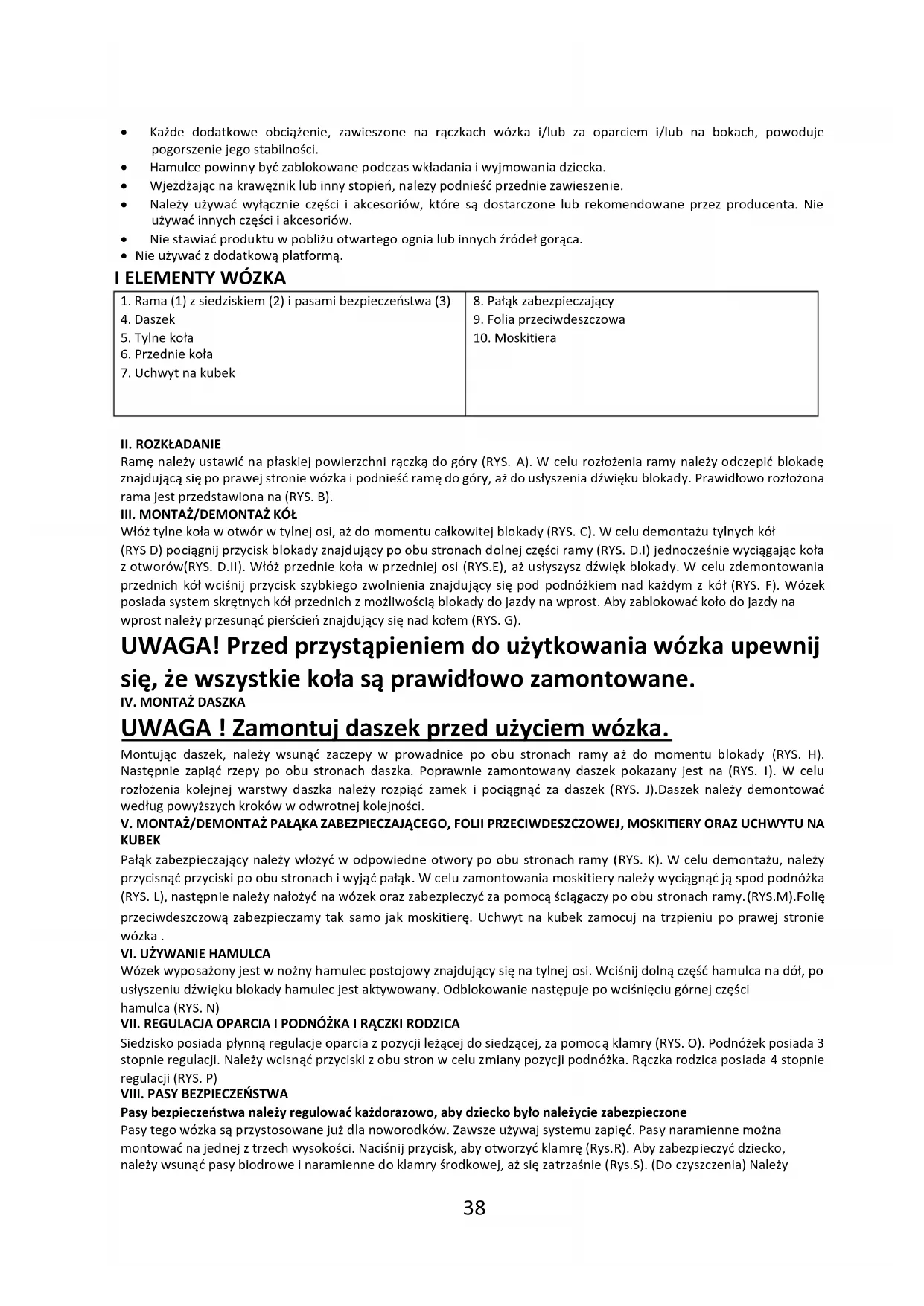 Obowiązkiemى nabywcyى jestى zapewnienieى prawidłowejى instalacjiى wszystkichى elementówى funkcyjnych,ى jakى równieżى dokonywanieى właściwychى zabiegówى konserwacyjnychى orazى regulacjiى wى celuى utrzymaniaى wózkaى wى dobrymى stanieى technicznym. Wózekىnależyىokresowoىsprawdzaćىpodىkątemىpotencjalnychىproblemów.ىPoniżejىprzedstawionoىistotneى czynności,ىjakieىnależyىwykonaćىwىceluىzapewnieniaىbezpieczeństwaىdzieckuىorazىzapobieżeniaىskróceniuىżywotnościى produktu:
