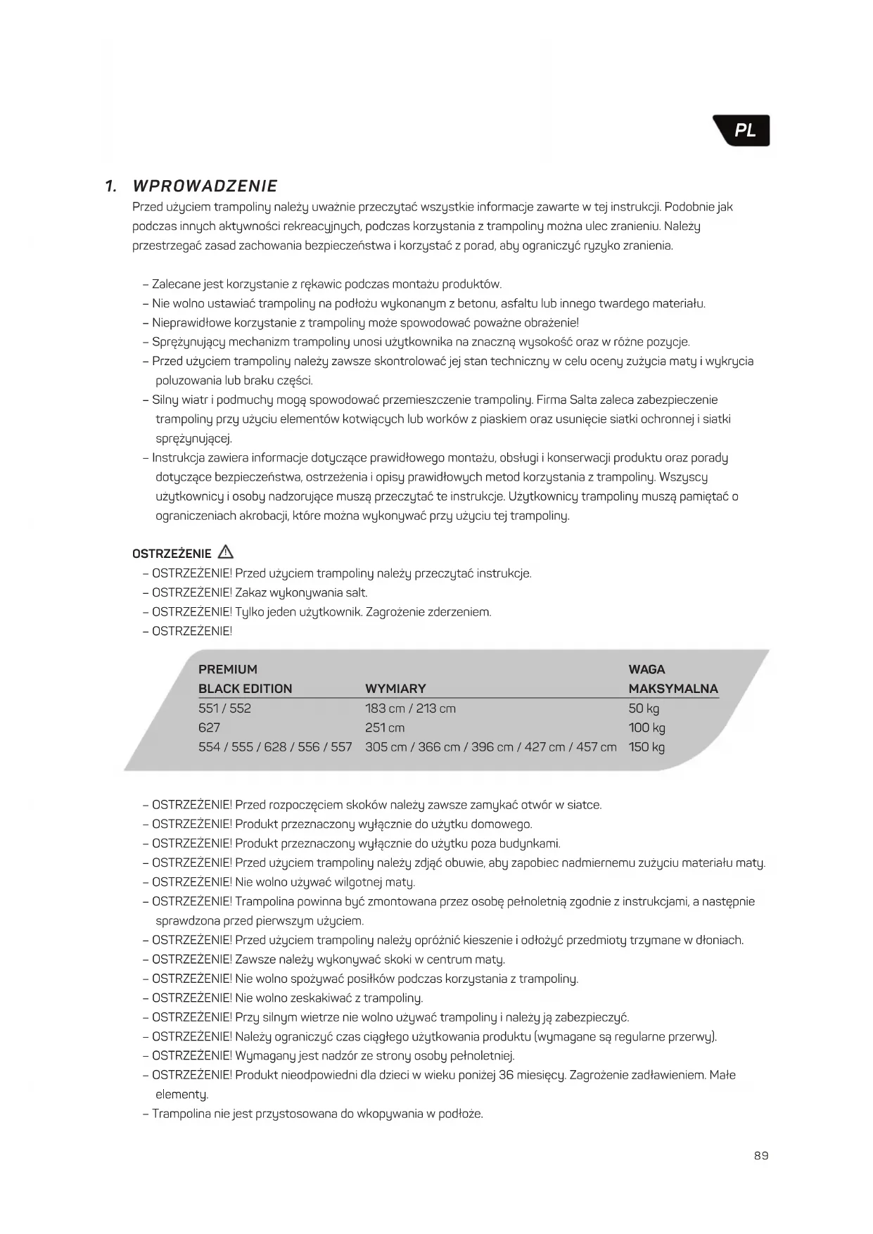 Premium Black Edition 552 - Trampolina Salta - Bezpłatna instrukcja obsługi