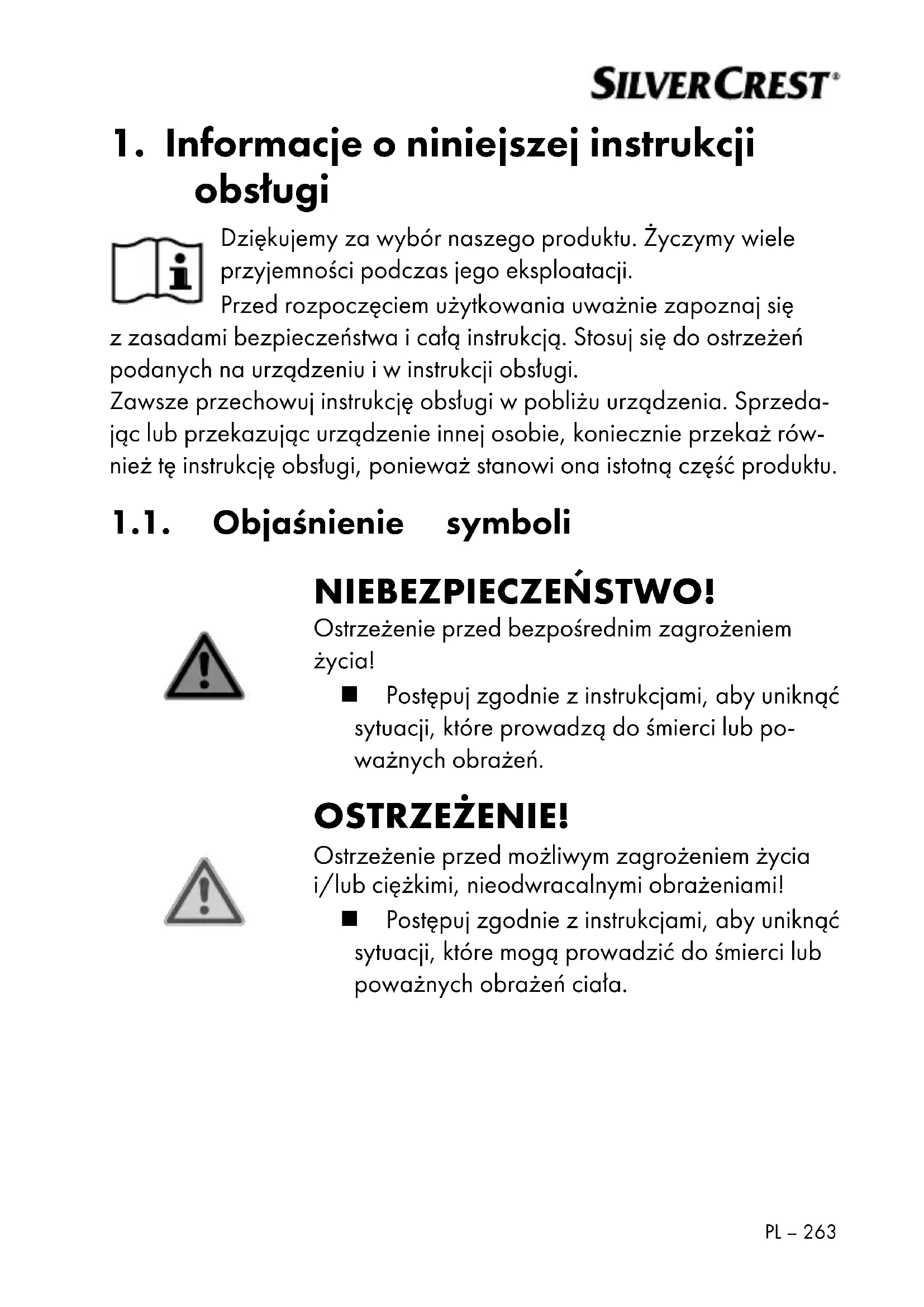 1. Informacje oniniejszej instrukcji obsługi ............. 263