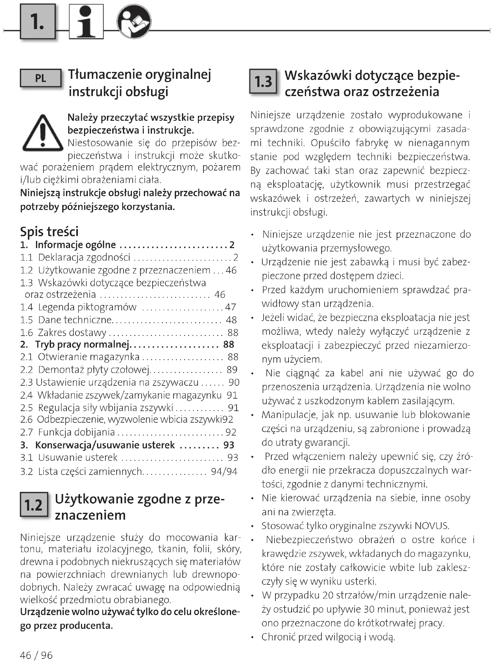 Tłumaczenie oryginalnej instrukcji obsługi.......................................... 46