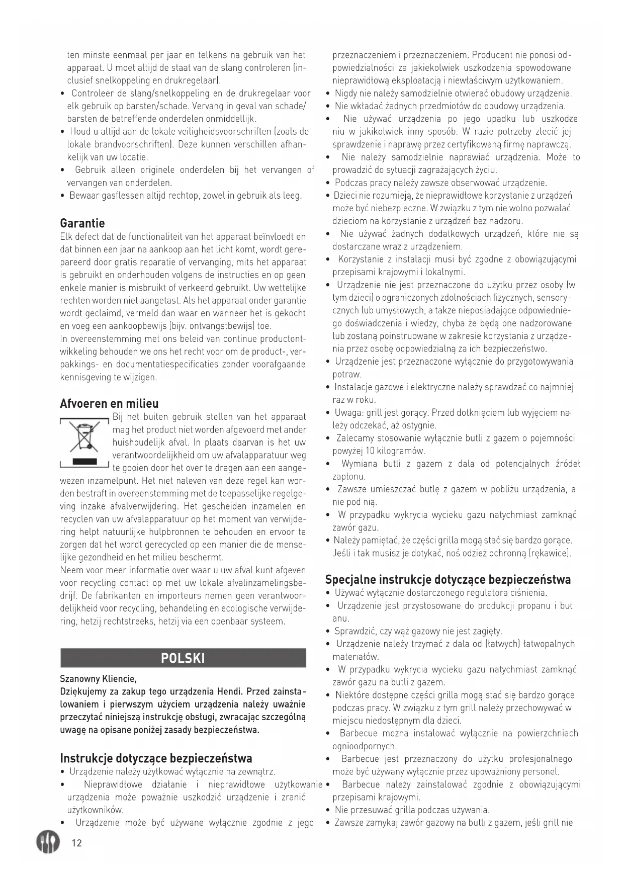 - Oczyścić i odtłuścić grill po każdym użyciu (aby zapobiec za- grożeniu pożarem!)